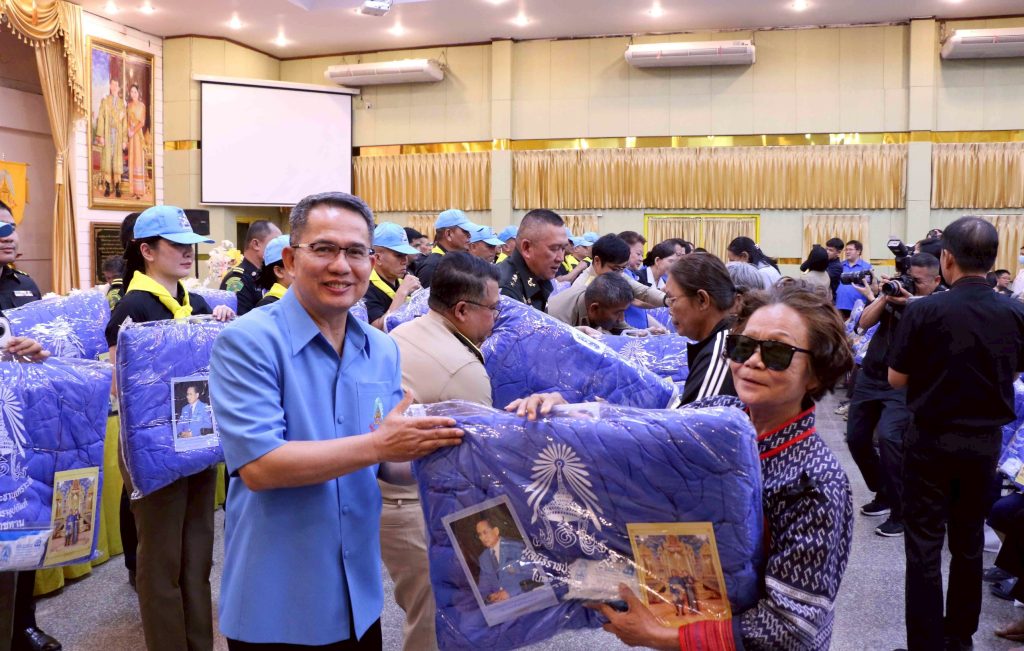 วันที่ 9 ธันวาคม 2568 ที่หอประชุมธรรมาภิบาล เทศบาลเมืองกาฬสินธุ์ นายสุวรรธณ์ เข็มธนเพ็ชร ผู้ว่าราชการ จ.กาฬสินธุ์ ประธานกรรมการมูลนิธิราชประชานุเคราะห์ประจำ จ.กาฬสินธุ์ เชิญผ้าห่มกันหนาวพระราชทาน พร้อมชุดยาและเวชภัณฑ์ วางบนพานหน้าพระบรมฉายาลักษณ์พระบาทสมเด็จพระเจ้าอยู่หัว เพื่อมอบให้นายอำเภอทั้ง 18 อำเภอ และนายกีรฒิการย์ พิมพะนิตย์ นายกเทศมนตรีเมืองกาฬสินธุ์ รวมจำนวน 2,300 ชุด และมอบผ้าห่มกันหนาวพระราชทาน พร้อมชุดยาและเวชภัณฑ์ให้แก่ประชาชนในเขตเทศบาลเมืองกาฬสินธุ์ จำนวน 200 ชุด