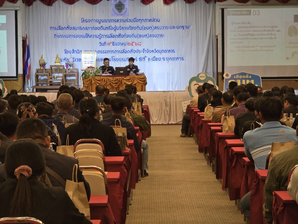 วันที่ 9 ธันวาคม 68 นายจักรินทร์ ชาลีพุทธาพงศ์ ผู้อำนวยการสำนักงานคณะกรรมการการเลือกตั้งจังหวัดมุกดาหาร ประธานเปิดโครงการบูรณาการความร่วมมือในการเลือกตั้งสมาชิกสภาท้องถิ่นหรือผู้บริหารท้องถิ่น (อบต.) หลังครบวาระและยกฐานะ ณ ห้องริเวอร์แกรนด์ บอลลูน โรงแรมริเวอร์ซิตี้ อ.เมืองมุกดาหาร (ที่มีระบบรองรับการประชุมใหญ่) โดยมีผู้ตรวจการเลือกตั้งและผู้สมัครรับเลือกตั้งสมาชิกสภาองค์การบริหารส่วนตำบลและนายก อบต. จากทั้ง 27 แห่ง รวม 549 คน ในจังหวัดมุกดาหารเข้าร่วมอบรม