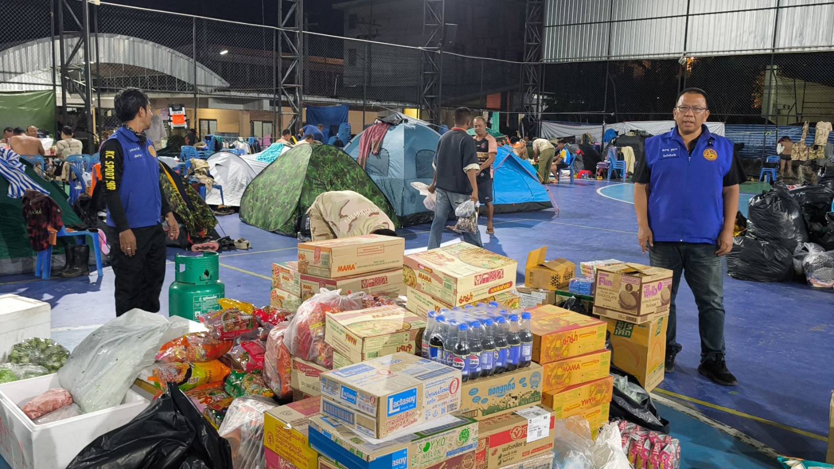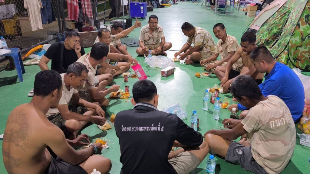 จากนั้นเจ้าหน้าที่ อส.จังหวัดประจวบคีรีขันธ์ ที่ปฏิบัติงานในพื้นที่หาดใหญ่ ได้แจกจ่ายเสบียงไปตามกองร้อยต่างๆทั้ง 9 กองร้อย เพื่อประกอบเมนูอาหารตามที่ชื่นชอบ เสริมเพิ่มเติมจากโรงครัวเดิมที่ทำข้าวกล่องแจกจ่ายประจำ