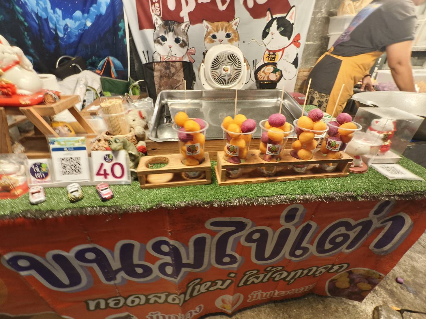 นายชำนาญ เผยว่าสูตรการทำขนมไข่เต่า ดูจากยูทูปเป็นไกด์แล้วเอามาปรับเปลี่ยนสูตรของตัวเอง จนเข้าที่ทั้งวิธีการทำ การทอดและการใช้ไฟทั้งการเร่งและเบาไฟ เป็นเทคนิคอย่างหนึ่ง ซื้อวัตถุดิบมาจาก อ.ไทรโยค เป็นแหล่งขายมันม่วงและมันแครอท นำมานึ่งบดผสมกับแป้งมันปั้นเป็นลูกกลมๆ ขนาดพอกิน แล้วลงทอดใช้น้ำมันเมล็ดในปาล์มทอด เนื่องจากน้ำมันจะใส ไม่ดำ ตอนทอดจะให้แฟนทอด ซึ่งจะมีวิธีการทอดและเขย่าขนมไข่เต่าไม่ให้อมน้ำมันจนกรอบสุกเหลืองและม่วง สะเด็ดน้ำมันแล้วใช้พัดลมเป่าอีกที ให้ไข่เต่าไม่อมน้ำมัน สีสันน่ากิน ใส่ถ้วยขายถ้วยละ 40 บาท วันหนึ่งทำขายประมาณ 50 กิโลกรัม ตอนนำขึ้นจากกะทะ ขนมไข่เต่าจะกรอบ นุ่ม เหนียวอร่อยและยังให้ประโยชน์ต่อสุขภาพอีกด้วย ทำให้ถูกใจนักท่องเที่ยวมาซื้อกิน ในช่วงวันหยุดเสาร์อาทิตย์ สร้างรายได้ดีในช่วงไฮซีซั่น อยากเชิญชวนคนมาเที่ยวบ้านอีต่องมาเดินถนนคนเดินและมาชิม “ขนมไข่เต่าทอดสดใหม่ ใส่ใจทุกลูก”