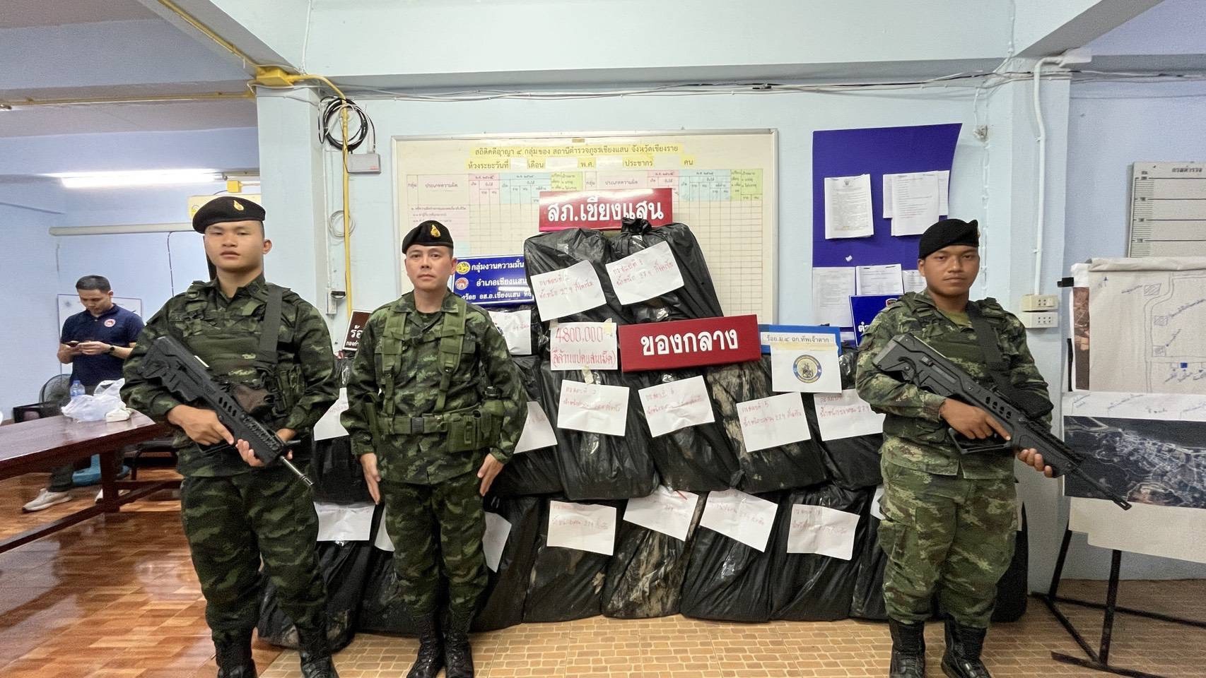 เจ้าหน้าที่ตำรวจจึงเข้าตรวจสอบรถพบมีกระสอบฟางวางอยู่ที่บรรทุกท้ายรถและในเบาะนั่งในรถพบมีจำนวน 20 ใบ ภายในมีของกลางยาบ้าทั้งหมด 4,800,000 เม็ดดังกล่าวจึงนำส่งพนักงานสอบสวน สภ.เชียงแสน เพื่อดำเนินการตรวจกฎหมายต่อไป.