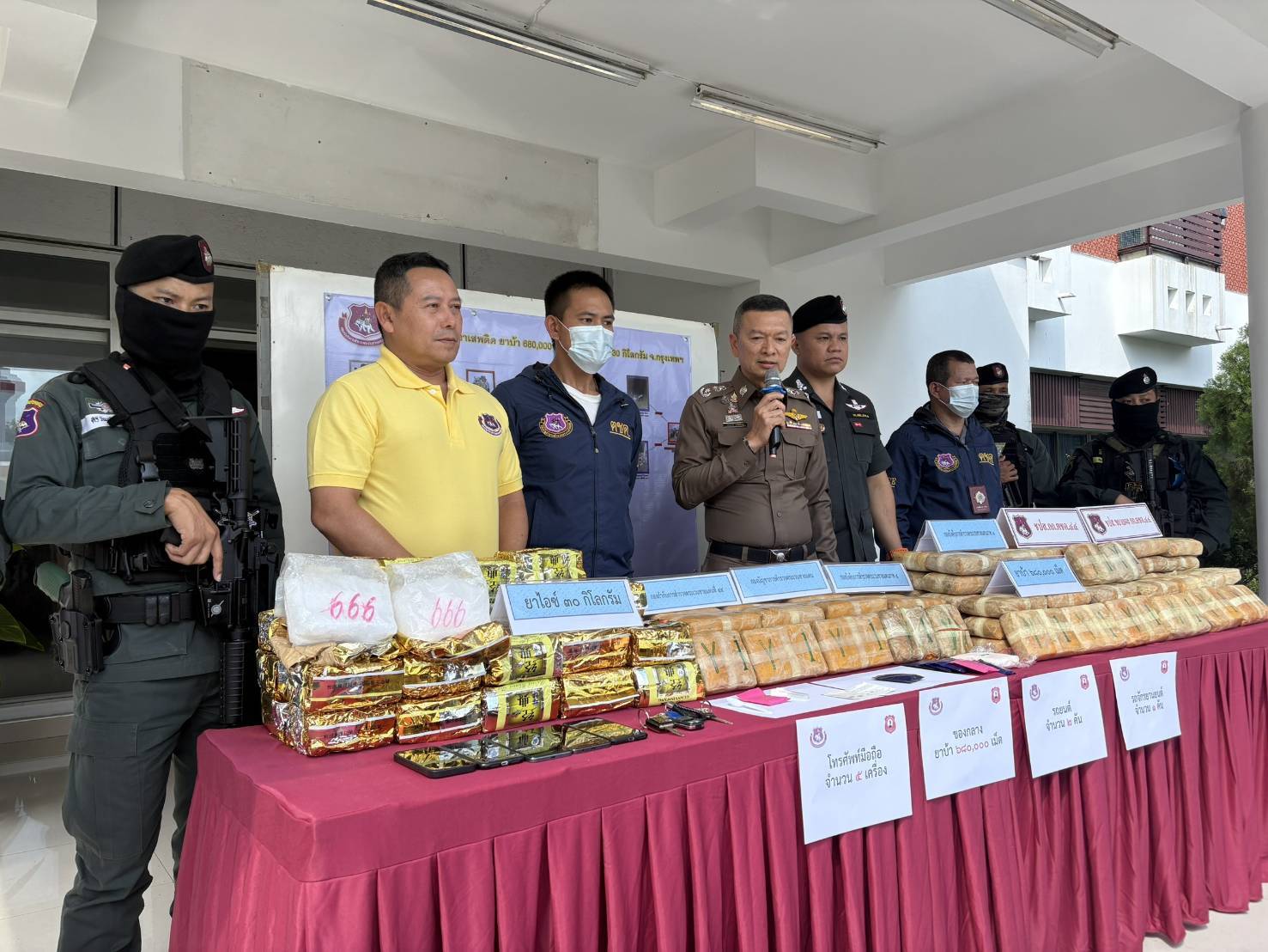 เมื่อวันที่ 24 ตุลาคม 68 ผู้สื่อข่าวรายงานว่าที่กองบังคับการตำรวจตระเวนชายแดนภาค1 ต.คลองห้า อ.คลองหลวง จ.ปทุมธานี พล.ต.ต.ปกปภพ บดีพิทักษ์ รอง ผบช.ตชด. (ปป.) พร้อมด้วยพล.ต.ต.พหล เกตุแก้ว ผบก.ตชด.ภาค 4 ผบ.ฉก.ตชด.จชต พล.ต.ต.จักรเพชร เพชรพลอยนิล ผบก.ตชด.ภาค 1 พร้อมชุดสืบสวนได้แถลงข่าวจับกุมผู้ต้องหาขบวนการค้ายาเสพติดรายใหญ่ประกอบนายมูฮัมหมัด อายุ 34 ปี อาชีพ รปภ.อยู่ม.1 ต.บ่อทอง อ.หนองจิก จ.ปัตตานี นายมูฮัมหมัด อายุ 21 ปี อยู่ม.7 ต.จวบ อ.เจาะไอร้อง จ.นราธิวาส นายณัฏฐนันท์ อายุ 23 ปี อยู่ม.2 ต.จวบ อ.เจาะไอร้อง จ.นราธิวาส พร้อมของกลางยาเสพติดให้โทษประเภท 1 (ยาบ้า) จำนวนประมาณ 680,000 เม็ดยาเสพติดให้โทษประเภท 1 (ไอซ์) ประมาณ 30 กิโลกรัม รถจักรยานยนต์ จำนวน 1 คัน รถยนต์ 2 คัน