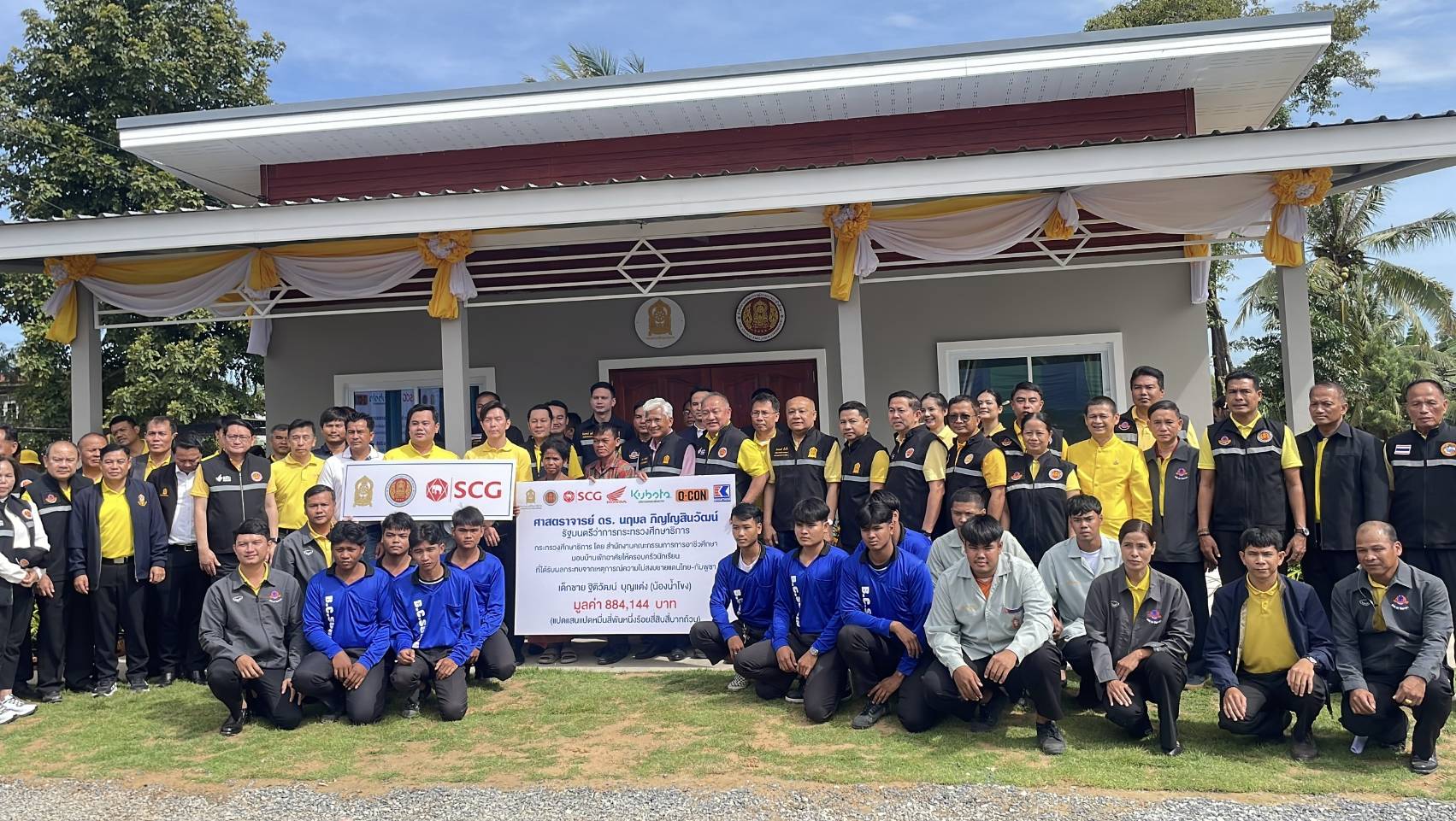 วันที่ 25 ตุลาคม 2568 ที่ บ้านโจรก ตำบลด่าน อำเภอกาบเชิง จังหวัดสุรินทร์ พบว่ามีชาวบ้าน และนายสุธี บุญแต่ง ซึ่งเป็นปู่ และย่าของน้องน้ำโขง เด็กชายวัย 8 ขวบที่เสียชีวิตจากเหตุการณ์จรวดทหารกัมพูชายิงมาตกใส่บ้าน ทั้งสองคนเสียใจกับเหตุการณ์ที่เกิดขึ้น ซึ่งได้คอยต้อนรับ นายสุเทพ แก่งสันเทียะ ปลัดกระทรวงศึกษาธิการ และคณะผู้บริหารของกระทรวงศึกษาและกรมอาชีวะ ซึ่งเดินทางแทนรัฐมนตรีกระทรวงศึกษาธิการ เพื่อทำพิธีส่งมอบบ้านพักอาศัยให้กับครอบครัวน้องน้ำโขง โดยมี นายสุทธิ์โรจน์ เจริญธนะศักดิ์ นายอำเภอกาบเชิง, คุณวิโรจน์ รุจิเจริญชัย บริษัท ปูนซิเมนต์ไทย จำกัด (มหาชน), นายธนฐั ชัย สุริย์ฉาย บริษัท คุณเฮงยานยนต์สุรินทร์ (1999) จำกัด, นายยศพล เวณุโกเศศ เลขาธิการคณะกรรมการการอาชีวศึกษา ร่วมกันมอบทุนการศึกษาให้กับพี่น้องของน้องน้ำโขง ที่ได้รับผลกระทบจากเหตุการณ์ความไม่สงบ และมอบถุงยังชีพ และพบปะพูดคุยให้กำลังใจประชาชนในพื้นที่ จากนั้น ปลัดกระทรวงศึกษาธิการได้ส่งมอบบ้านพักอาศัยที่เกิดจากความร่วมแรงร่วมใจของทุกภาคส่วน โดยได้รับสนับสนับสนุนโครงสร้างและงบประมาณจสกภาคเอกชน ฝีมือและแรงงานจากกลุ่มอาชีวศึกษาจังหวัดสุรินทร์ ที่ใช้เวลาการสร้างบ้านหลังมาตรฐานในเวลาเพียง 23 วัน เพื่อส่งมอบให้ครอบครัวผู้สูญเสีย นอกจากนี้ยังมอบรถจักรยานยนต์, รถมอเตอร์พ่วงข้าง, และรถแทรคเตอร์ ให้ไว้ใช้ประโยชน์ด้วย พร้อมแปลงเกษตรหลังบ้าน พร้อมกันนี้ยังมอบแบตเตอรี่ ให้กับ ผู้บัญชาการมณฑลทหารบกที่ 25 อีกด้วย ภายหลังจากเสร็จพิธีส่งมอบ คณะผู้บริหารการกระทรวงศึกษาธิการ และเลขาธิการคณะกรรมการการอาชีวศึกษา และผู้แทนภาคเอกชน ที่ช่วยสร้างบ้าน เข้าเยี่ยมดูบ้านฝั่งที่ประสบภัย(บ้านหลังเก่า)ที่เสียหายจากแรงระเบิด BM-21 พร้อมร่วมเข้าสอบถามให้กำลังใจกับปู่และย่าของน้องน้ำโขง