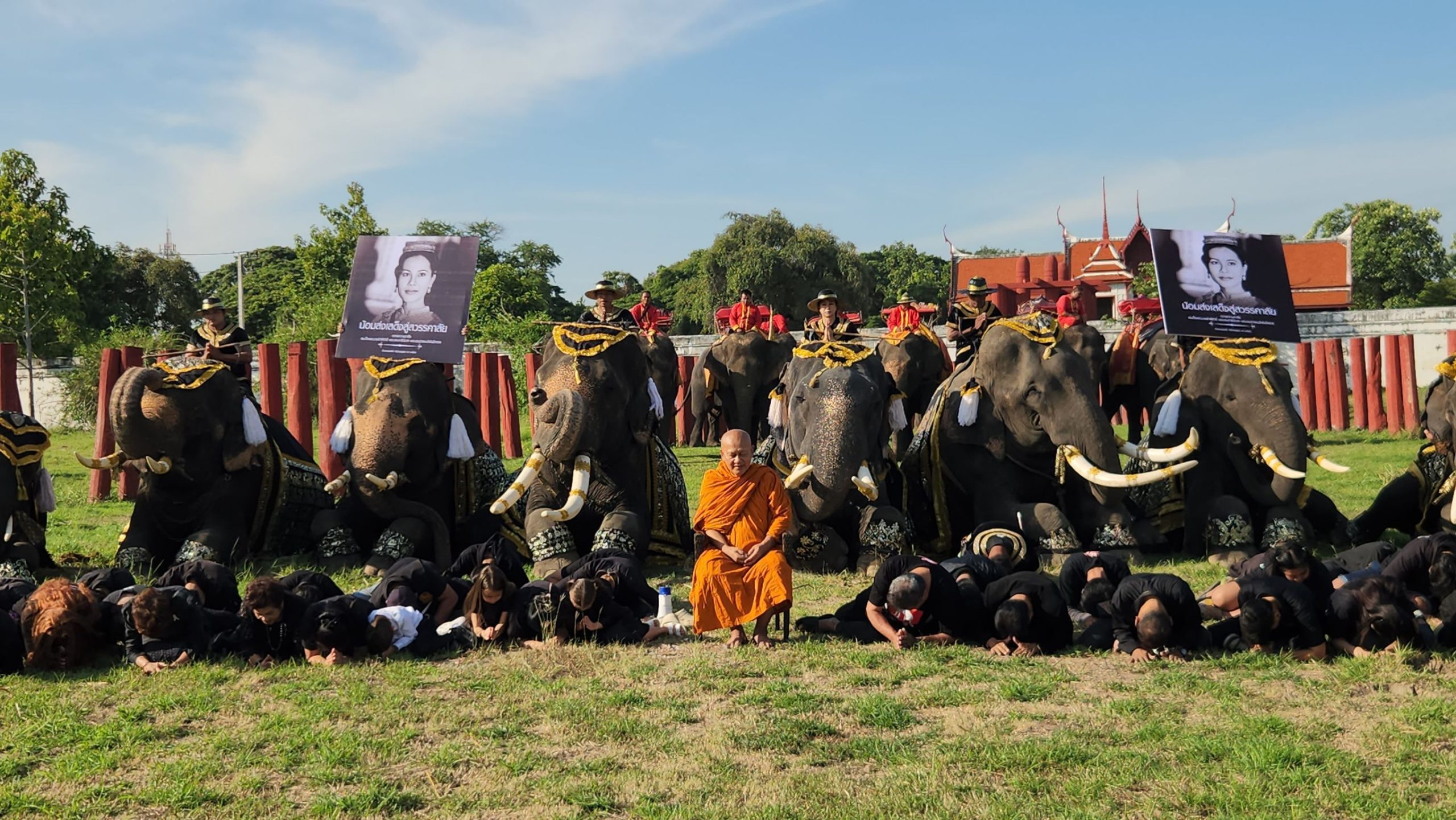 ภายในพิธี เหล่าควาญช้างและคชสารจากวังช้างอยุธยา แล เพนียด ได้ร่วมยืนสงบนิ่งเป็นเวลา 93 วินาที เพื่อถวายความอาลัยและน้อมสำนึกในพระมหากรุณาธิคุณอันหาที่สุดมิได้ ที่พระองค์ทรงมีต่อพสกนิกรชาวไทย และต่อช้างไทย ซึ่งทรงให้ความเมตตาและสนับสนุนการอนุรักษ์ช้างไทยมาโดยตลอด