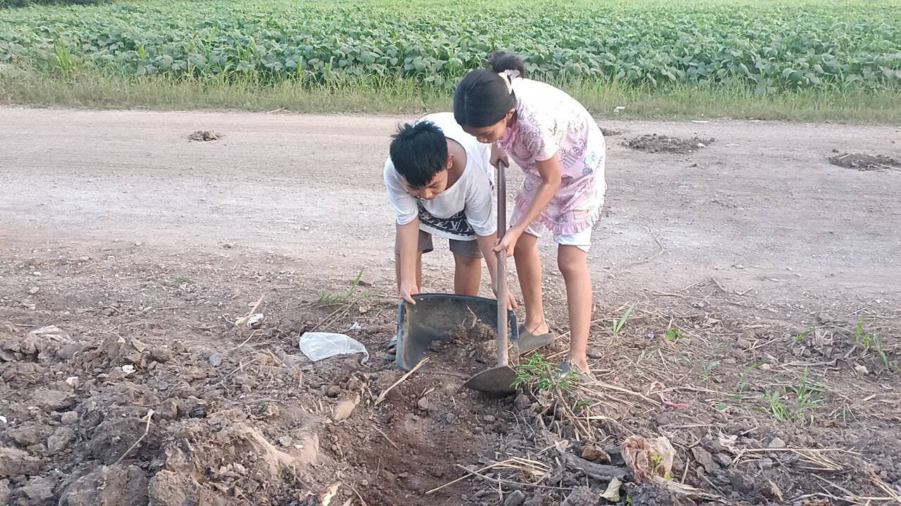 ช่วงพบค่ำของวันที่ 26 ตค.68 พบ 2 หนูหนูน้อยเด็กชายและหญิงขุดดินถมหลุมถนนทางสาธารณะระหว่างหมู่บ้าน ซึ่งบริเวณดังกล่าวอยู่ริมถนนสาย 304 ซึ่งเป็นทางเบี่ยงไว้สำหรับรถยนต์และรถจักรยานยนต์สัญจรเข้าออกระหว่างหมู่ที่ 2 ต.ลาดตะเคียน อ.กบินทร์บุรี จ.ปราจีนบุรี ซึ่งมีประชาชนหมู่ที่2ใช้เส้นทางเบี่ยงรวมถึงพนักงานบริษัทนิคมไฮเทคใช้สัญจรไปมา เด็กชายและเด็กหญิงอายุราว 10 ขวบใช้จอบกับบุ้งกี๋ขุดดินมาถมผิวทางลูกรังที่เป็นหลุมหลายจุดช่วงหน้าฝนที่ผ่านมา เด็กหญิงเป็นคนใช้จอบขุดดินใส่บุ้งกี๋ส่วนเด็กชายเป็นคนหิ้วบุ้งกี๋ใส่ดินมาถมหลุมมากกว่า 20 หลุมทางเบี่ยงบริเวณนี้ระยะทางยาว 300 เมตร และมีหลุมหลายจุด ซึ่งแต่ละหลุมต้องใช้ดินถม 3-4 บุ้งกี๋ตอนหลุมทั้งสองเป็นเด็กนักเรียนสองโรงเรียนดังมีชื่อเสียง