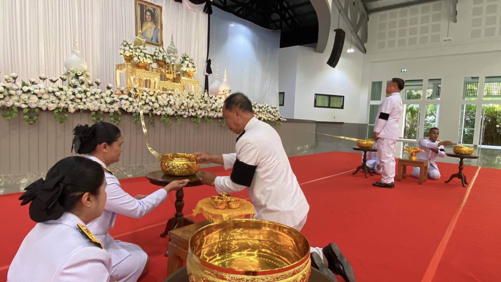 โดยในพิธีเป็นไปอย่างสงบ สง่างาม และเปี่ยมด้วยความอาลัย โดยผู้เข้าร่วมพิธีได้ร่วมกันถวายน้ำสรงพระบรมศพ พร้อมลงนามแสดงความอาลัย เพื่อแสดงออกถึงความจงรักภักดีและสำนึกในพระมหากรุณาธิคุณที่ทรงปฏิบัติพระราชกรณียกิจนานัปการ เพื่อประโยชน์สุขของพสกนิกรทั่วประเทศตลอดรัชสมัย