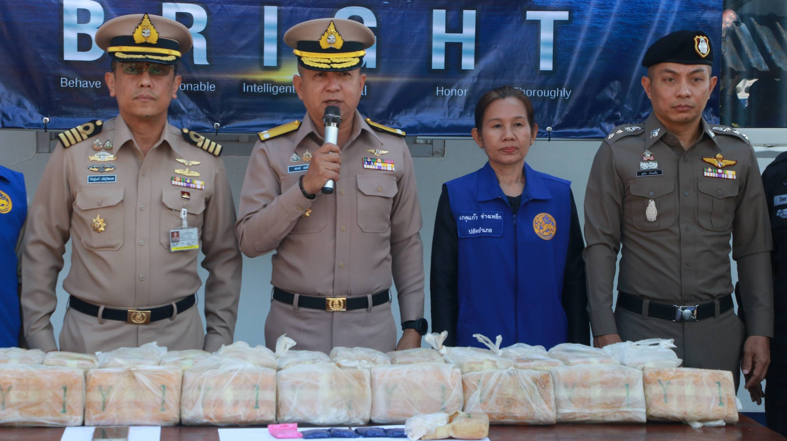 วันที่ 28 ตุลาคม 2568 ที่ หน่วยเรือโพนพิสัย หน่วยเรือรักษาความสงบเรียบร้อยตามลำแม่น้ำโขง เขตหนองคาย พล.ร.ต.ณรงค์ เอมดี ผบ.นรข.,นาวาเอก วิศิษฐ์พงศ์ เจริญวิชยเดช ผู้บังคับหน่วยเรือรักษาความสงบเรียบร้อยตามลำแม่น้ำโขง เขตหนองคาย ,ร.อ.ภาสพล สีทองเกตุ หน.หน่วนเรือโพนพิสัย,นายเดชมนตรี ผิวเหลือง ป้องกันจังหวัดหนองคาย,พ.ต.อ.สุรกิจ ค้วนเครือ ผกก.สภ.โพนพิสัย,ฝ่ายปกครองอำเภอโพนพิสัย ,ร้อย ฉก.ทพ 2105 ,ร.ต.ไชโย หรพูน บกควบคุมที่ 2 กกล.สุรศักดิ์มนตรี และหน่วยงานที่เกี่ยวข้อง ร่วมกันแถลงผลการตรวจยึดยาบ้า จำนวน 298,000 เม็ด ได้ที่บริเวณเขื่อนป้องกันตลิ่งริมฝั่งแม่น้ำโขง หน้าสถานีโรงไฟฟ้าย่อย บ.แดนเมือง ต.วัดหลวง อ.โพนพิสัย จว.หนองคาย