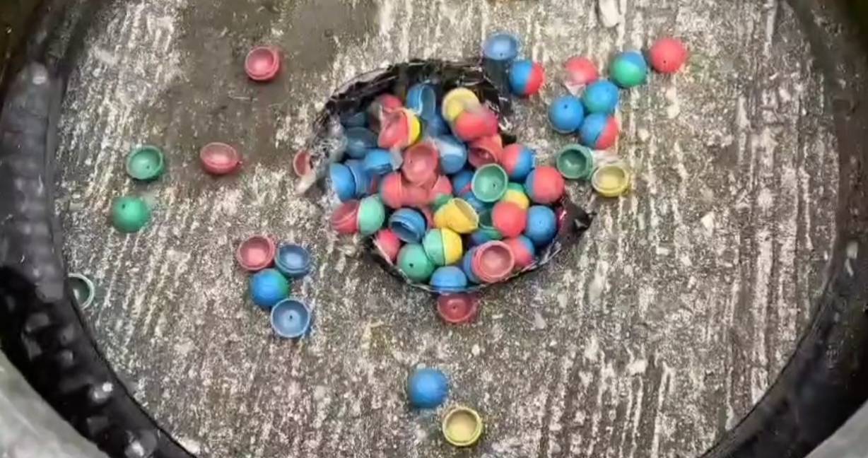 ภาพเหตุการณ์ ตำรวจเข้าตรวจสอบ “วัตถุ ต้องสงสัย” พันเทปสีดำ กลางหมู่บ้าน พบเป็น “ประทัดลูกบอล” พร้อมใช้งาน!