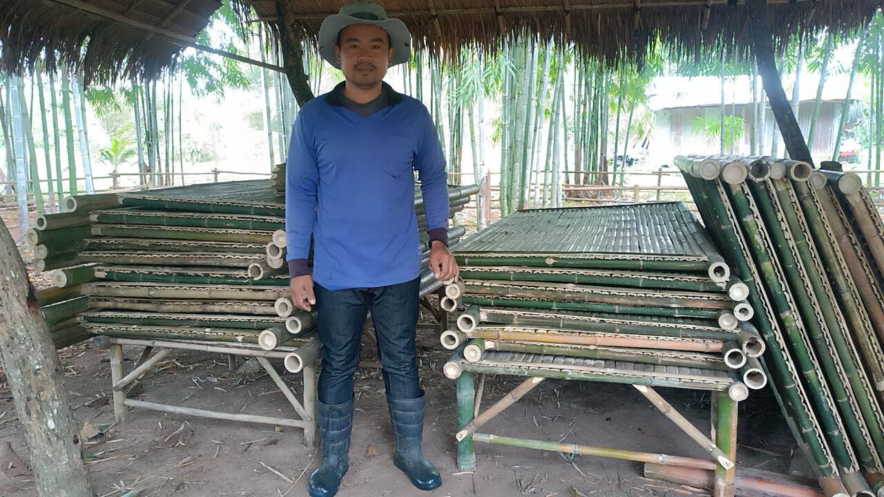 วันที่ 30 ตค.68 สวนไผ่นิยม(ไผ่ซางหม่น)ปลูก4ปีตัดต้นขายทำเฟอร์นิเจอร์ได้แล้วสวนไผ่ติยมหรือไผ่ซางหม่นโดยเจ้าของสวนหนุ่มแห่งบ้านคลองยาง ต.นนทรี อ.กบินทร์บุรี จ.ปราจีนบุรี นายวรชัย ผลบุญ อายุ 39 ปี ทดลองซื้อหน่อไผซางหม่นมาปลูก 3ไร่ แบ่งพื้นที่ข้างบ้านปลูกเนื่องจากพื้นที่ของตนเองมีสระน้ำลึกมีน้ำใช้ตลอดปี โดยปลูกไผ่ซางหม่นระยะห่าง 3×3เมตร วางท่อสปริงเกอร์รถน้ำช่วงหน้าแล้ง2วัน/ครั้ง หลังจากปลูกไผ่ซางหม่น4เมื่อปีตัดลำขายและทำแคร่ไม้ไผ่เพื่อจำหน่าย ข้อดีของไผ่ซางหม่นจะทนกว่าไผ่เลี้ยงมอดจะไม่กินเนื้อไม้
