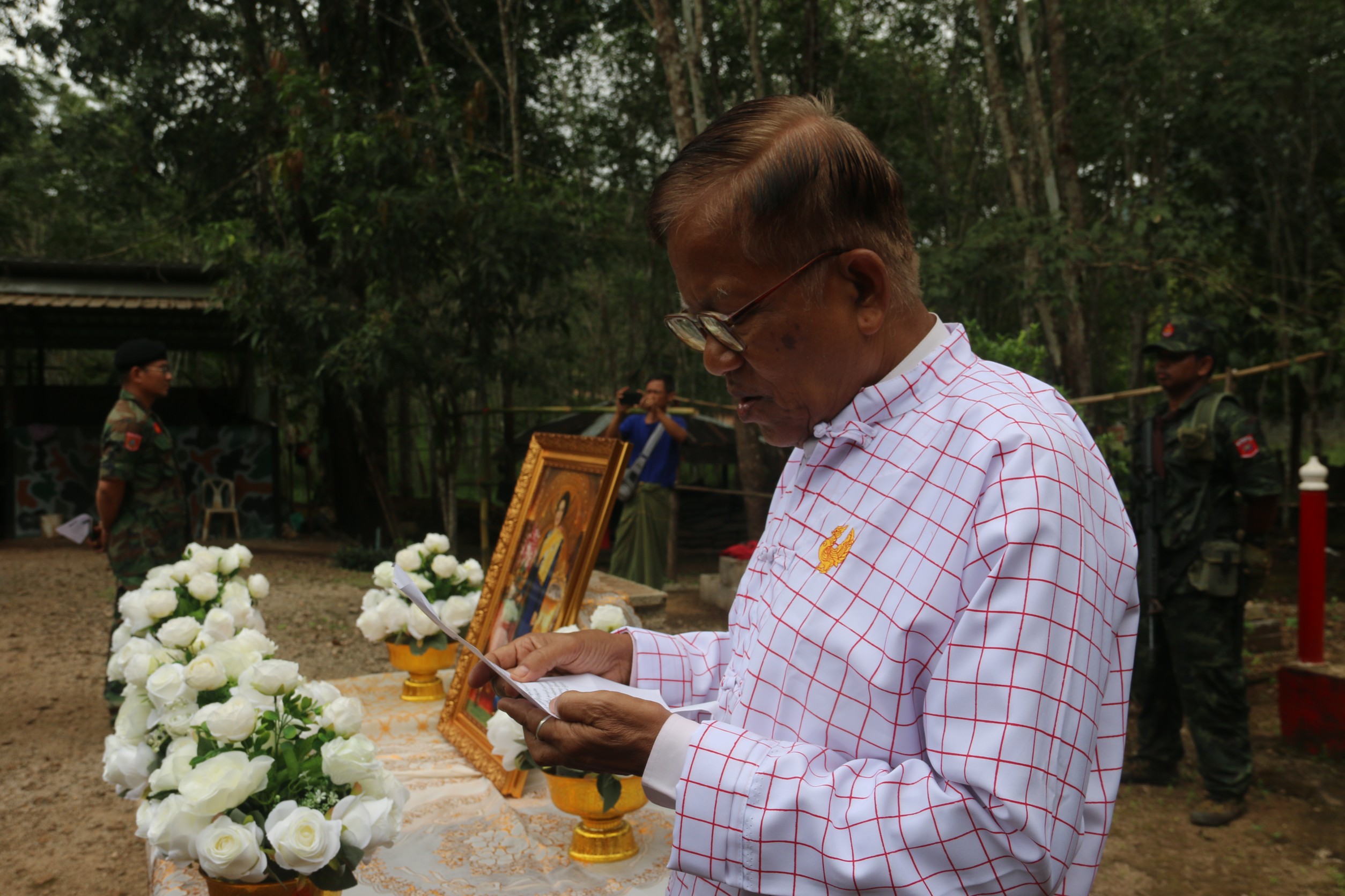 เมื่อเวลา 10.00 น วันนี้ 30 ต.ค. 2568 ผู้สื่อข่าวรายงานว่า ภายในกองพันที่ 5 กองทัพปลดปล่อยแห่งชาติมอญ(MNLA)บ้านบ่อญี่ปุ่น นายหงสา ประธานพรรครัฐมอญใหม่(NMSP) เป็นประธานในพิธีไว้อาลัยต่อการเสด็จสวรรคตของ สมเด็จพระนางเจ้าสิริกิตต์ พระบรมราชินีนาถ พระบรมราชนนีพันปีหลวง โดย นายจอโม นายอำเภอพยาตองซู(พื้นที่พรรครัฐมอญใหม่) พ.ท.ยีโซ่ ผู้บังคับกองพันกองทัพปลดปล่อยแห่งชาติมอญที่5(MNLA) นายอ่องชนะ ปลัดอำเภอ ร.อ.ไอค็อก รองหัวหน้าชุดประสานพรรครัฐมอญใหม่ เจ้าหน้าที่พรรครัฐมอญใหม่ ผู้นำหมู่บ้านบ่อญี่ปุ่น ทหารกองเกียรติยศ เข้าร่วมพิธีในครั้งนี้