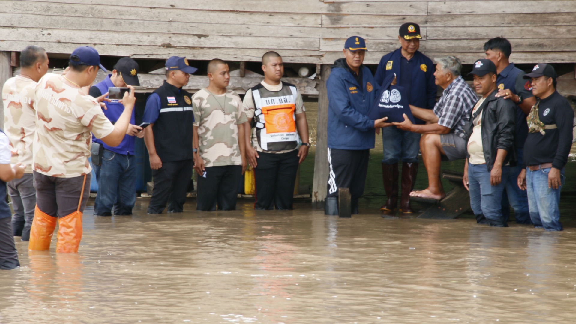 มท. 3 ผวจ. ห่วงใยสั่ง ปภ.ร่วมนายอำเภอ เร่งช่วยเหลือผู้ประสบภัยพร้อมสื่อมวลชนำถุงยังชีพลุยน้ำไหลเชียวมิดเอวเข้าไปแจกชาวบ้าน