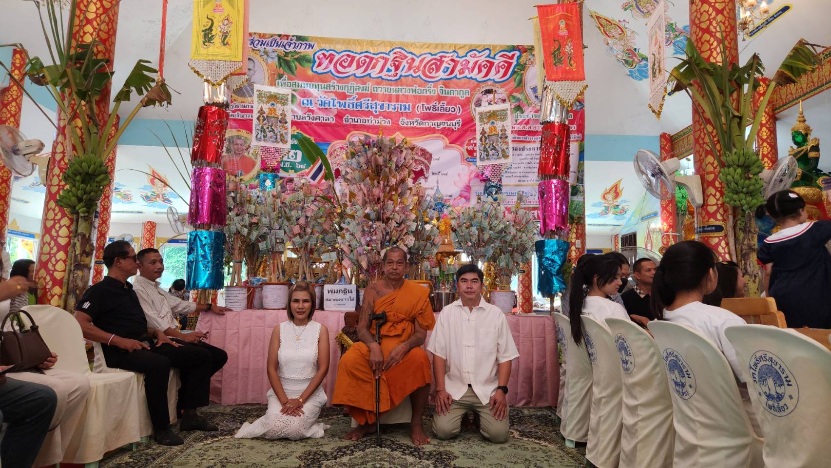 ผู้สื่อข่าวรายงานว่า เมื่อเวลา 11.00 น. วัยที่ 2 พฤศจิกายน 2568 ที่วัดโพธิ์ศรีสุขาราม หรือวัดโพธิ์เลี้ยว ตำบลวังศาลา อำเภอท่าม่วง จังหวัดกาญจนบุรี ได้จัดพิธีทอดกฐินสามัคคีประจำปีขึ้น มีประชาชนในพื้นที่และผู้มีจิตศรัทธาร่วมงานเป็นจำนวนมาก