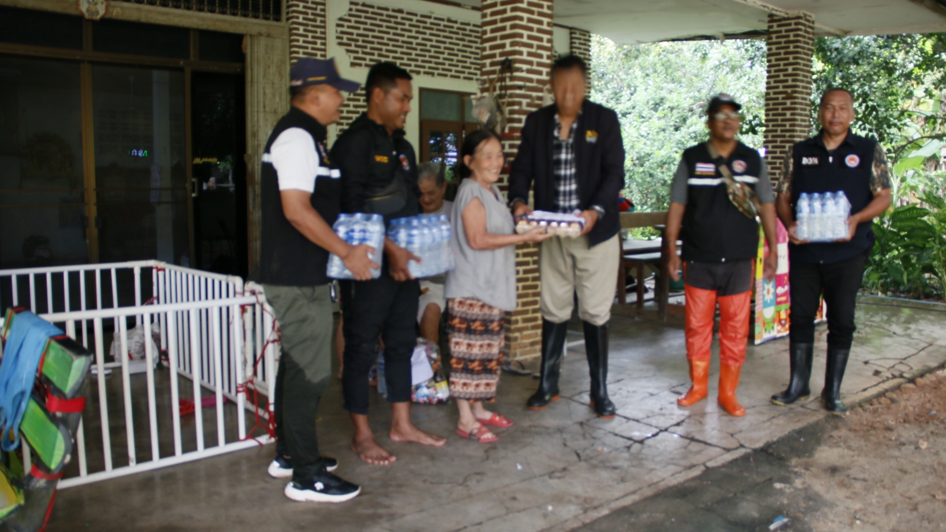 ส่วน นายชวโรจน์ มากแก้ว นายอำเภอบ่อพลอย กล่าวว่าเป็นวันที่ 5 แล้วอำเภอบ่อพลอยประสบปัญหาภัยพิบัติน้ำท่วมฉับพัน น้ำจากคลองลำตะเพิน ได้ไหลหลากเข้าท่วมในหลายหมู่บ้าน นายอำเภอบ่อพลอย พร้อมด้วย อส. กำนัน ผู้ใหญ่บ้าน กิ่งกาชาดอำเภอบ่อพลอย องค์การบริหารส่วนตำบลหนองกุ่ม ได้เดินทางเข้ามายังบ้านหนองกระทุ่ม หมู่ที่ 2 โดยมาตรวจสอบช่วยเหลือ 2 ตายาย กับหลานเล็กๆ อีก 2 คน บ้านดังกล่าวถูกตัดขาดจากหมู่บ้านทั้งหมด เส้นทางเข้าบ้านรถธรรมดาจะเข้ามาไม่ได้ จะเข้าไปได้เฉพาะรถที่ยกสูงเท่านั้น คุณตาและคุณยาย เห็นนายอำเภอเข้าไปถึงบ้านรู้สึกดีใจมาก