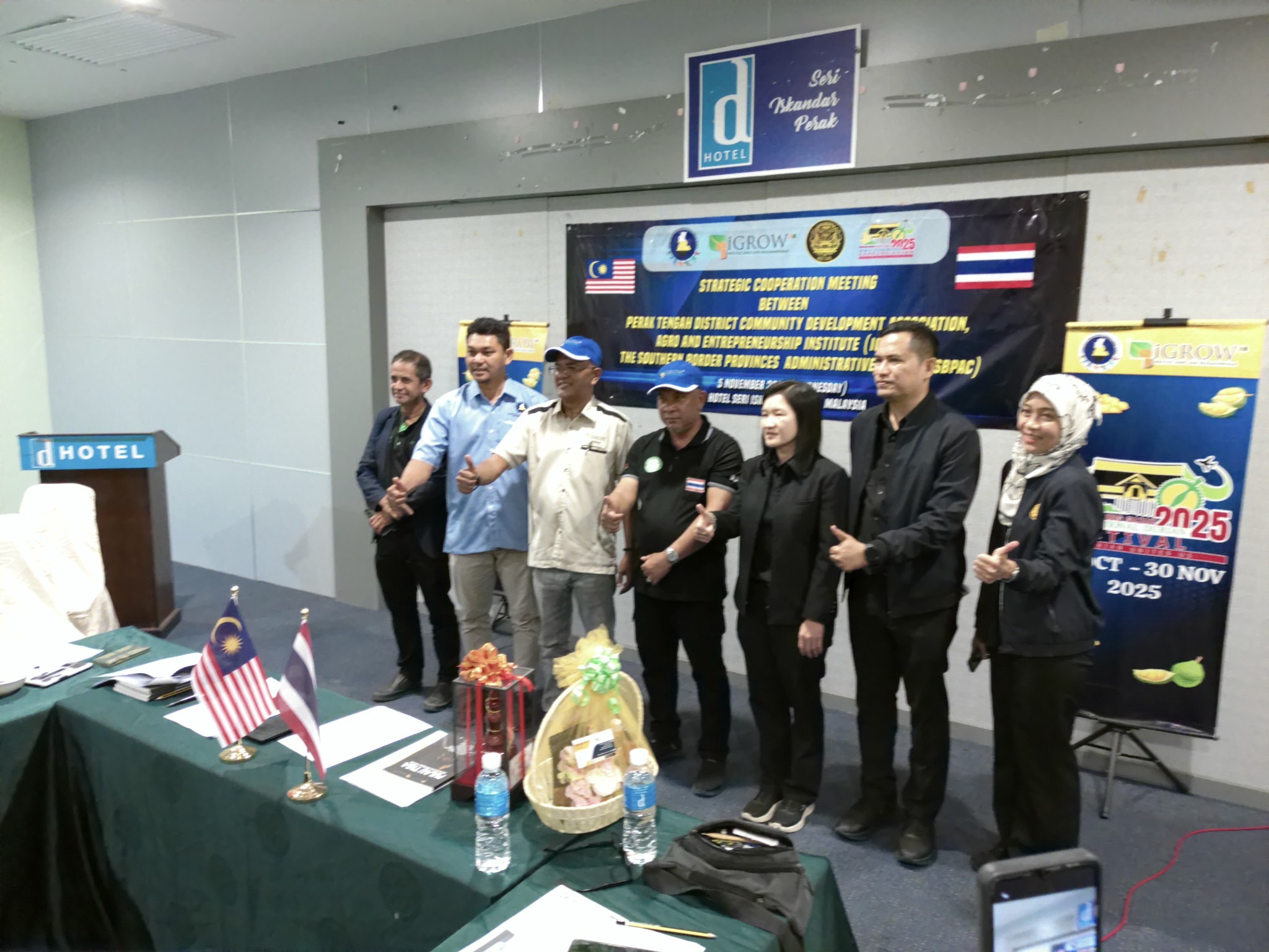 การประชุมเชิงกลยุทธ์เชื่อมความสัมพันธ์เพื่อเสริมสร้างความร่วมมือ ข้ามพรมแดนระดับภูมิภาคระหว่างประเทศมาเลเซียรัฐเปรักและศูนย์อำนวยการบริหารจังหวัดชานแดนใต้(ศอ.บต.)ประเทศไทย พร้อมการขับเคลื่อนนำกองทัพสื่อมวลชนเพื่อสันติจังหวัดชายแดนใต้ จับมือเดินหน้า สานต่อจากกลยุทธเดิน ก้าวสู่การร่วมมือเชิงกลยุทธ์มิติใหม่ ที่เน้นสร้างความมั่นคงทางเศรษฐกิจฐานรากอย่างยั่งยืน นำโมเดลที่ให้ประชาชนมีบทบาท เข้าถึงในการจัดการด้วยตนเอง และมีภาครัฐให้การสนับสนุน หลังจากการประชุมสำคัญเมื่อวันพุธที่ 5 พฤศจิกายน 2568 ณ โรงแรม D Hotel Seri Iskandar รัฐเปรัก ประเทศมาเลเซีย การประชุมครั้งประวัติศาสตร์นี้เป็นการรวมพลังกันของสามองค์กรหลัก ได้แก่ สมาคมพัฒนาชุมชนอำเภอเปรักกลาง, สถาบันการเกษตรและผู้ประกอบการ (IGROW) ของมาเลเซีย และ ศูนย์อำนวยการบริหารจังหวัดชายแดนภาคใต้ (ศอ.บต.) ของไทย ซึ่งนำเอกชนและสื่อมวลชนไปด้วยเพื่อวางรากฐานสำหรับแผนงานการพัฒนาเศรษฐกิจข้ามพรมแดนที่เข้มแข็งยิ่งขึ้น