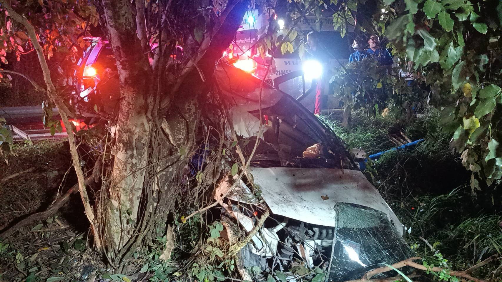 นายณภัทร ฆานะสิทธิ์ อาสาสมัครมูลนิธิร่วมกันกตัญญูกล่าวว่าได้รับแจ้งเหตุรถเก๋งชนต้นไม้มีผู้เสียชีวิตภายในรถเมื่อเวลาตีสามเศษ จากนั้นได้มาตรวจสอบที่เกิดเหตุร่วมกับหน่วยกู้ภัยสว่างบำเพ็ญธรรมสถานและหน่วยกู้ภัยมังกรตรวจสอบพบผู้เสียชีวิตถูกอัดก๊อปปี้เสียชีวิตเป็นชาย 1 ราย