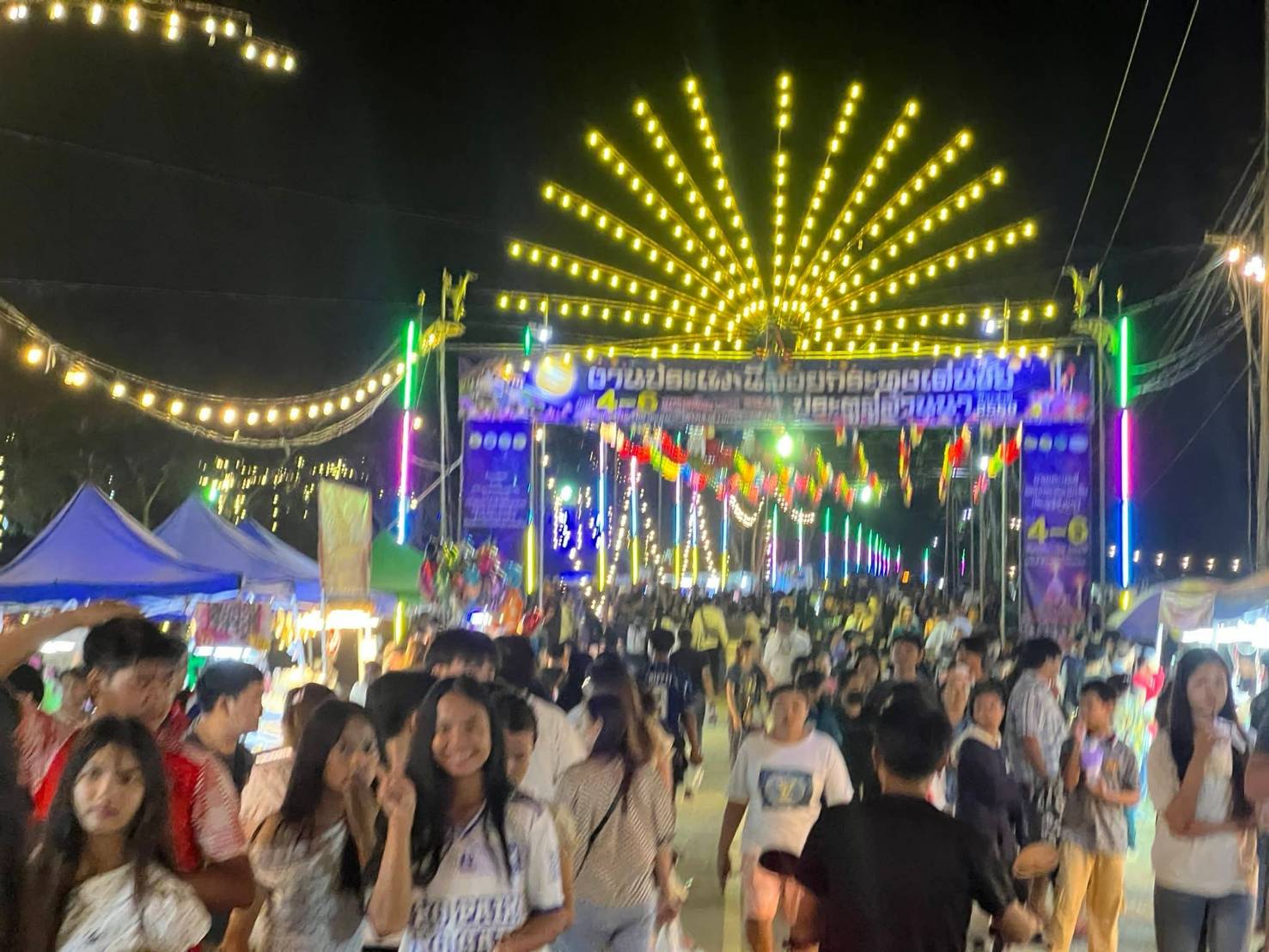 ในส่วนบริเวณงาน เริ่มตั้งแต่ทางเข้างานและรอบบริเวณงานมีการประดับประดาไฟประดับ แสงสีแสงสว่างไสวเต็มบริเวณงาน นักท่องเที่ยวต่างพากันถ่ายรูปเซลฟี่ เพื่อเป็นที่ระลึกกันอย่างคึกคัก และในบริเวณงานมีพ่อค้าแม่ขาย นำสินค้าอาหาร มาให้บริการให้กับพี่น้องประชาชนและนักท่องเที่ยวที่มาเที่ยวงาน ทำให้บรรยากาศของงานเป็นไปอย่าง คึกคักครื้นเครง สร้างเศรษฐกิจในภาพรวมเป็นอย่างดี
