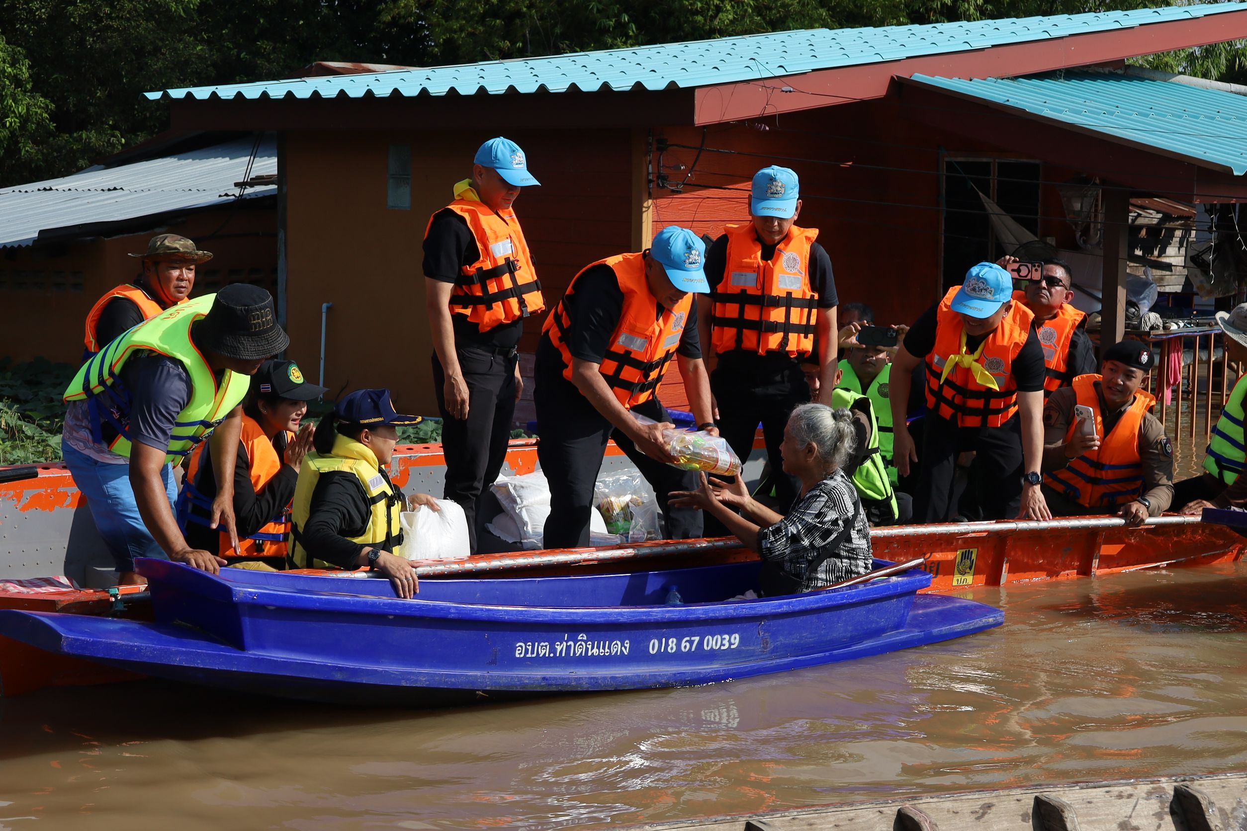 จากนั้น พล.ต.ท.วัฒนา ยี่จีน พร้อมคณะ ได้ลงพื้นที่ตรวจเยี่ยมชาวบ้านในพื้นที่น้ำท่วม โดยเฉพาะผู้สูงอายุและครอบครัวผู้ป่วยติดเตียงที่ไม่สามารถออกมารับสิ่งของได้ พร้อมมอบถุงยังชีพเพื่อบรรเทาความเดือดร้อน พบว่าระดับน้ำในหลายชุมชนเพิ่มสูงกว่า 3-4 เมตร บ้านเรือนหลายหลังถูกน้ำท่วมถึงพื้นบ้านและหน้าต่าง