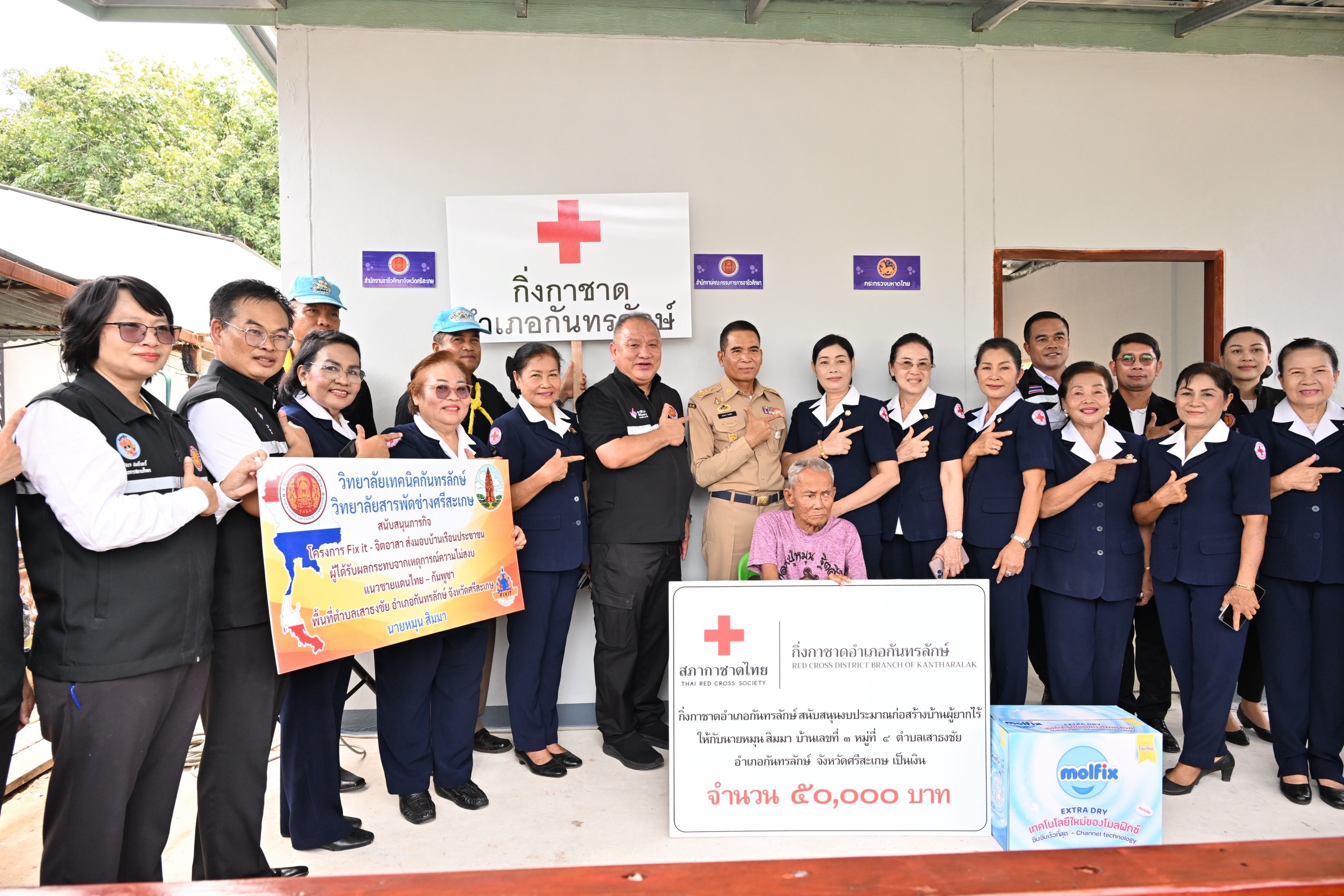 วันที่ 11 พฤศจิกายน 2568 — นายยศพล เวณุโกเศศ เลขาธิการคณะกรรมการการอาชีวศึกษา (เลขาธิการ กอศ.) เป็นประธานเปิดกิจกรรม “Fix it – อาชีวะจิตอาสา” ส่งมอบบ้านเรือนที่ได้รับการซ่อมแซมให้แก่ผู้ประสบเหตุจากความไม่สงบตามแนวชายแดนไทย–กัมพูชา พร้อมมอบถุงยังชีพและอาหารให้กับประชาชนในพื้นที่ตำบลเสาธงชัย ณ ศาลากลางประชาคมหมู่บ้าน บ้านภูมิซรอลใหม่ หมู่ 12 ตำบลเสาธงชัย อำเภอกันทรลักษ์ จังหวัดศรีสะเกษ