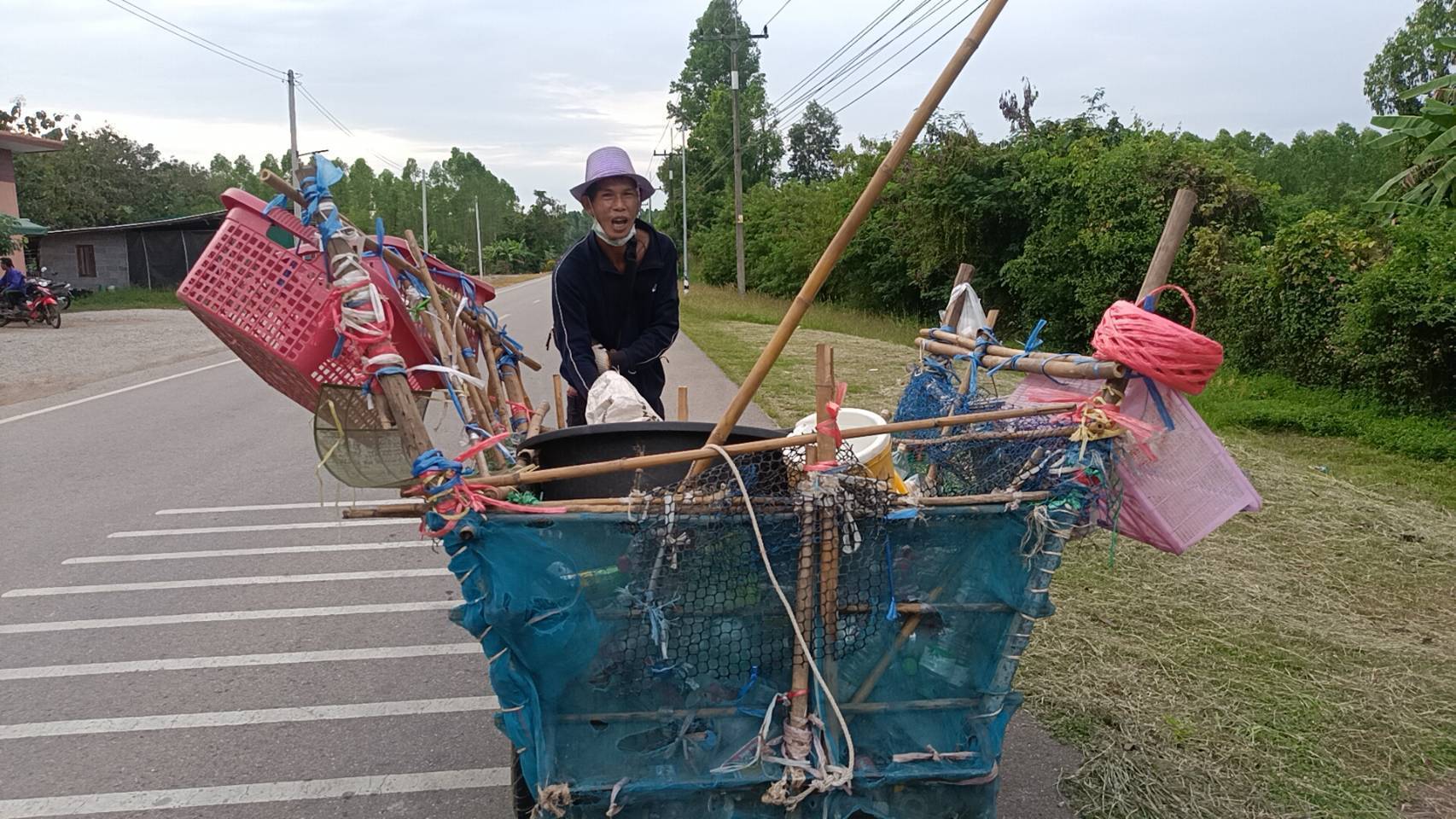 ด้วยความสู้ชีวิตดัดแปลงรถไสแล้วออกหาเก็บของเก่าริมถนนขายเพื่อหารายได้ ไม่อยากเป็นภาระของใครเพราะต้องกินต้องใช้ทุกวัน ดีกว่านอนอยู่บ้านไปวันๆ หลังกินข้าวเช้าแล้วจะออกจากบ้านไปหาเก็บของเก่าริมถนน ร้านค้าที่ห่างจากบ้าน 2 กม.จะเก็บขวดพลาสติกฯไว้ให้ก็จะไปเก็บไปไว้คัดแยกแล้วเอาไปขายที่ร้านรับซื้อของเก่าได้ครั้งละ 100-200 บาท ได้เงินมาก็จะแบ่งซื้อกับข้าวมาให้พ่อที่บ้าน