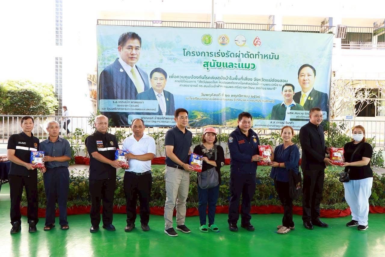 วันที่ 20 พฤศจิกายน 2568 เวลา 09.30 น. ที่โรงเรียนเทศบาลเมืองแม่ฮ่องสอน (เทศบาล 3 แผนกประถมศึกษา) ตำบลจองคำ อำเภอเมืองแม่ฮ่องสอน จังหวัดแม่ฮ่องสอน กรมปศุสัตว์จัดพิธีเปิด โครงการเร่งรัดผ่าตัดทำหมันสุนัขและแมว เพื่อควบคุมและป้องกันโรคพิษสุนัขบ้าในพื้นที่เสี่ยง ประจำปีงบประมาณ พ.ศ. 2569 ภายใต้ โครงการสัตว์ปลอดโรค คนปลอดภัยจากโรคพิษสุนัขบ้า ตามพระปณิธานของ ศาสตราจารย์ ดร.สมเด็จพระเจ้าน้องนางเธอ เจ้าฟ้าจุฬาภรณวลัยลักษณ์ อัครราชกุมารี กรมพระศรีสวางควัฒน วรขัตติยราชนารี
