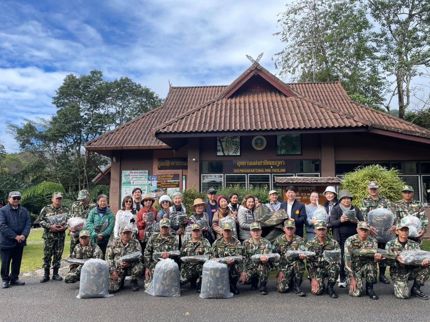 อุทยานแห่งชาติดอยภูคา นำโดย นายรณกฤต จักร์เงิน หัวหน้าอุทยานแห่งชาติดอยภูคา ได้รับการสนับสนุนเครื่องแต่งกายลายพราง ยาเวชภัณฑ์ เปลนอน และอุปกรณ์การดำรงชีพในป่า จาก