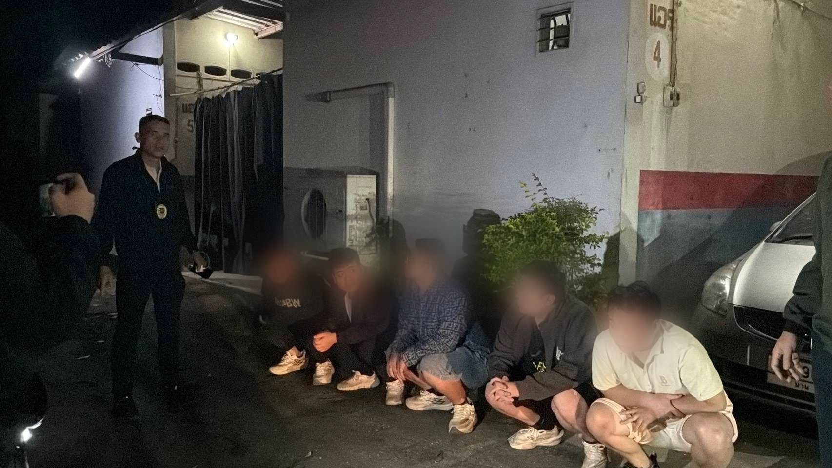 จากการดักซุ่มดูภายนอกเจ้าหน้าที่พบว่ามีชาวต่างชาติลักษณะเป็นชาวจีน จำนวน 5 คน นั่งรับประทานอาหารอยู่ข้างโรงแรม เมื่อแล้วเสร็จได้กลับเข้าไปในโรงแรม เจ้าหน้าที่จึงเข้าไปขอตรวจสอบพบทั้งหมดพักอยู่ที่ห้องพักเลขที่ 4 และ 5 พบทั้งหมดชื่อว่า