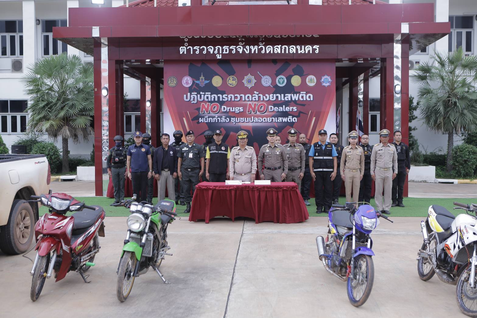 จังหวัดสกลนคร ปล่อยแถวเปิดปฏิบัติการ “NO Drugs No Dealers”ผนึกกำลังชุมชนปลอดภัยยาเสพติด พร้อมแถลงข่าวผลการจับกุมคดียาเสพติด ในพื้นที่ รวม 233 คดี ยึดยาบ้ากว่า 3 แสนเม็ด ยึดทรัพย์ 5 ล้าน