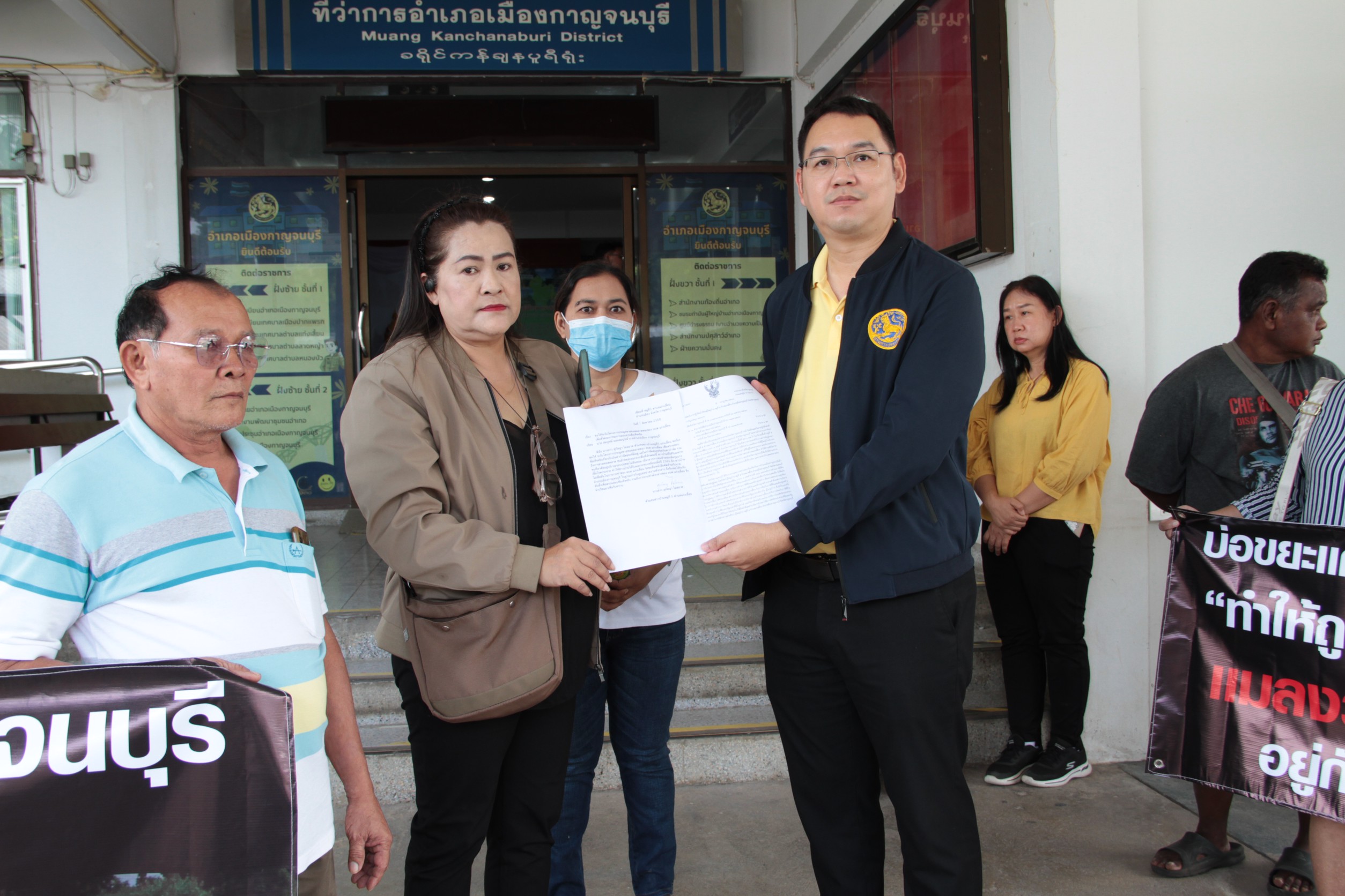 ส่วนที่บริเวณหน้าที่ว่าการอำเภอเมืองกาญจนบุรี นางสาวสุกัลญา ไผ่สะอาด พร้อมด้วยตัวแทนชาวบ้านหมู่ที่ 5 ตำบลแก่งเสี้ยน อำเภอเมือง จังหวัดกาญจนบุรี ได้เดินทางพร้อมด้วยป้ายข้อความเรียกร้องให้เจ้าหน้าที่เกี่ยวข้องระงับโครงประมูลการขายทอดตลาดขยะเจ้าปัญหานับแสนตัน บ้านเขาทอง เนื่องจากการกระทำผิดขั้นตอน และขอให้ตั้งคณะกรรมการสอบสวนเรื่องนี้เป็นการด่วน โดย นายสมบูรณ์ แผนสมบูรณ์ นายอำเภอเมืองกาญจนบุรี ติดราชการ ได้มอบหมายให้นายอเนกศักดิ์ เศรษฐพิศาล ปลัดอาวุโส ลงมารับหนังสือ จากนางสาวสุกัลญา ไผ่สะอาด ได้เป็นตัวแทนชาวบ้านแก่งเสี้ยน ที่อยู่รอบๆ กองขยะ ในครั้งนี้ พร้อมแจ้งว่าจะเร่งดำเนินการในเรื่องนี้เป็นการเร่งด่วน