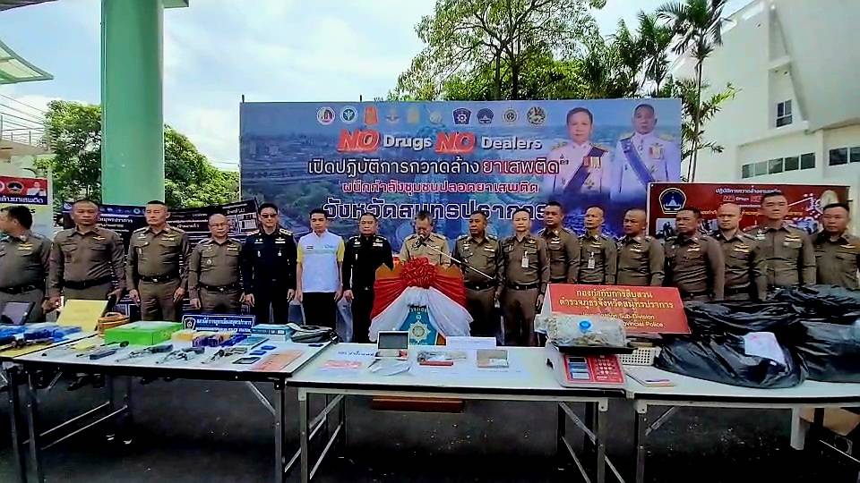 ตำรวจภูธรจังหวัดสมุทรปราการ บูรณาการความร่วมมือกับหน่วยงานที่เกี่ยวข้อง ดำเนินการปิดล้อมตรวจค้นหมู่บ้าน / ชุมชนเป้าหมายเครือข่ายยาเสพติด เพื่อทำการสืบสวนจับกุมและขยายผลเครือข่ายผู้ร่วมกระทำความผิด แล้วรวบรวมพยานหลักฐาน ขออนุมัติออกหมายจับผู้เกี่ยวข้อง รวมถึงค้นหาผู้เสพฯที่สมัครใจเข้ารับการบำบัดรักษา โดยผลการปฏิบัติตั้งแต่วันที่ 18 กรกฎาคม – 1 สิงหาคม 2568 จับกุมผู้ต้องหาทั้งหมดจำนวน 263 คดี ผู้ต้องหา จำนวน 270 คน ของกลางยาเสพติดยาบ้า 110,759 เม็ด ยาไอซ์ 188 กรัม เคตามีน 117 กรัม อาวุธปืน 13 กระบอก เครื่องกระสุน 98 นัด พร้อมทั้งตรวจยึดอายัดทรัพย์สิน (โทรศัพท์มือถือ ,เงินสด ,รถยนต์ ,รถจักรยานยนต์ และทรัพย์สินอื่นๆ) รวมมูลค่าทรัพย์ของกลาง 12,213,007 บาท
