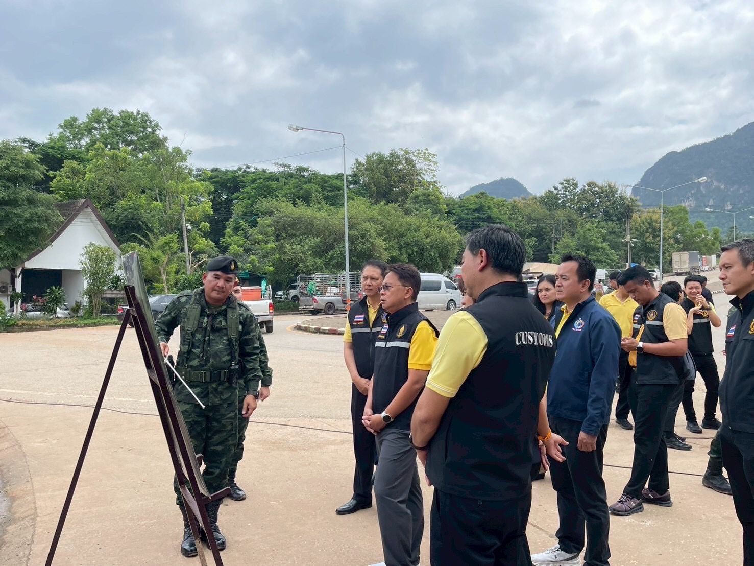 นายธีรัชย์ อัตนวานิช อธิบดีกรมศุลกากร นาย ยุทธนา พูลพิพัฒน์ รองอธิบดีกรมศุลกากร และคณะผู้บริหารกรมศุลกากรติดตามโครงการนโยบายส่งเสริมผู้ประกอบการนำเข้าและส่งออกผ่านพิธีการศุลกากร สร้างมูลค่าทางเศรษฐกิจให้กับประเทศ และตรวจเยี่ยมเจ้าหน้าที่ศุลกากรประจำจุด ผ่อนปรนชั่วคราวด่านเจดีย์สามองค์ ด่านถาวรบ้านพุน้ำร้อน จ.กาญจนบุรี
