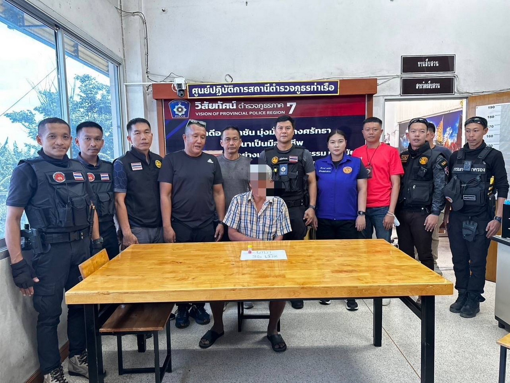 ต่อมาวันที่ 2 ส.ค.68 จังหวัดกาญจนบุรี นายอธิสรรค์ อินทร์ตรา ผู้ว่าราชการจังหวัด ,นายวุฒิพงษ์ สุภัควนิช รองผู้ว่าราชการจังหวัด ,นายฑรัท เหลืองสอาด ปลัดจังหวัด และพ.ต.อ.สุรยุทธ เมฆมังกร ผกก.สภ.เมืองกาญจนบุรี ได้สั่งการให้นายสุวัฒนา ม่วงหวาน ป้องกันจังหวัด นายหมวดตรีวุฒิภัทร คงสมัย รอง ผบ.ร้อย.อส.จ.กจ.1 พ.ต.ท.วศิน พลายศิริ รองผกก.สส.สภ.เมืองกาญจนบุรี พ.ต.ต.มารุต ฉัตรทัณฑ์ สว.สส.สภ.เมืองกาญจนบุรี พร้อมด้วยสมาชิก อส.และเจ้าหน้าที่ตำรวจชุดสืบสวน สภ.เมืองกาญจนบุรี จับกุมตัว นาย วัชรพงษ์ หรือมาร์ค อายุ 30 ปี ชาว ต.หนองบัว อ.เมืองกาญจนบุรี ของกลางยาเสพติดให้โทษประเภท 1 ( ยาเฮโรอีน ) หนักรวมถุงประมาณ 0.48 กรัม จำนวน 1 ถุง