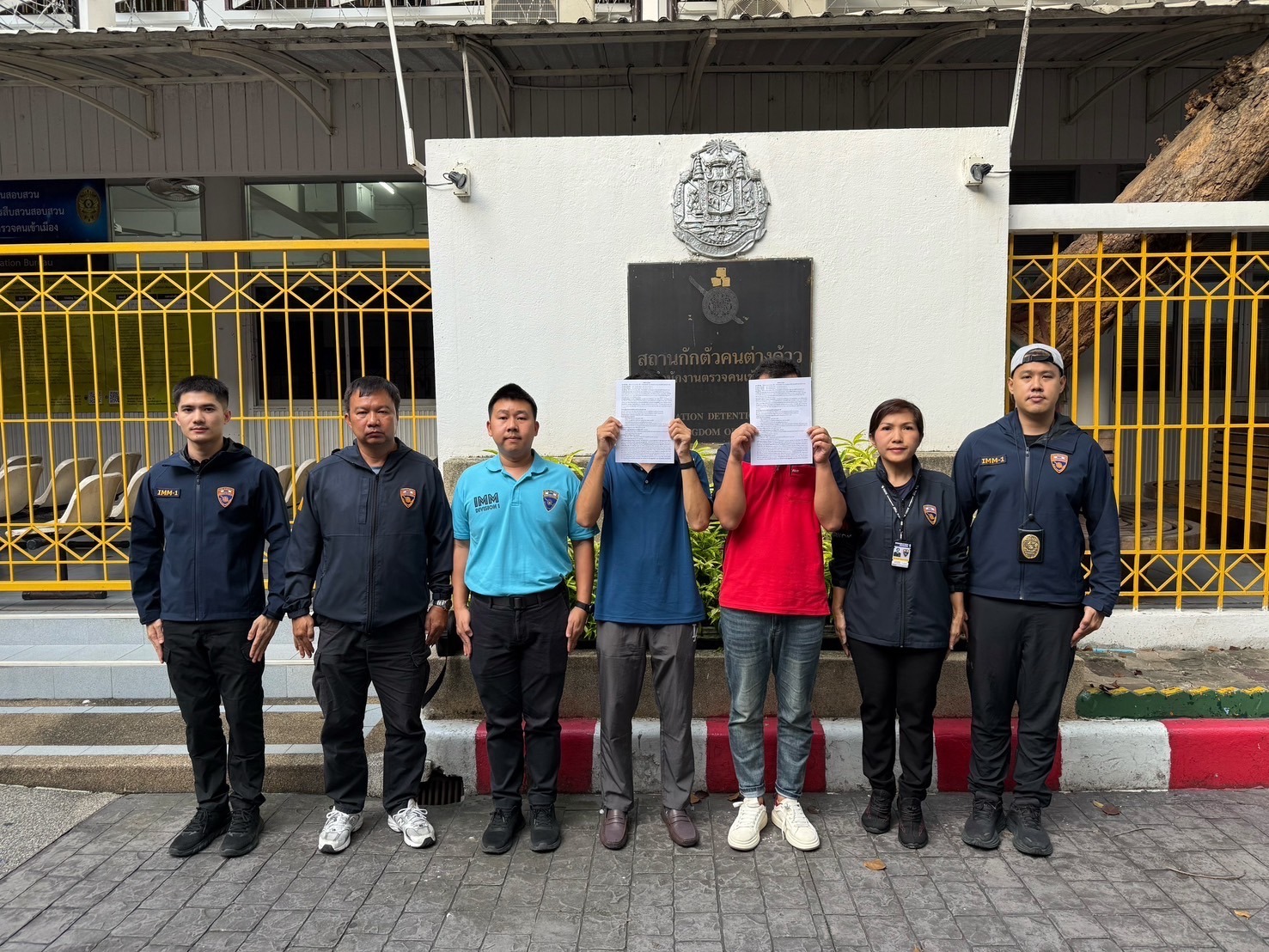 ต่อมาตามวันเวลาเกิดเหตุ คือวันที่ 24 ก.ค. 68 MR.TSAI (ไซ) จึงได้พา MR.ZHANG (จาง) มาพบเจ้าหน้าที่ตรวจคนเข้าเมืองด้วยตนเอง ณ ศูนย์บริการของกองบังคับการตรวจคนเข้าเมือง 1 บริเวณชั้น 6 ห้างสรรพสินค้า One Bangkok ถ.วิทยุ แขวงลุมพินี เขตปทุมวัน กรุงเทพมหานคร โดย MR.ZHANG (จาง) ได้ยื่นหนังสือเดินทางสัญชาติจีนของตน เพื่อแสดงให้กับเจ้าหน้าที่พิจารณา เจ้าหน้าที่เห็นความผิดสังเกต เกี่ยวกับรอยตราประทับขาเข้า ที่ปรากฏบนหนังสือเดินทางฉบับดังกล่าว มีร่องรอยการขีดฆ่าและแก้ไขตัดทอน โดยเติมข้อความ เปลี่ยนจากเดิมคำว่า “ผ.60-ม.17” เป็น “NON-IB” เพื่อให้สามารถยื่นคำร้องขออยู่ในราชอาณาจักรต่อไปได้ จึงได้แจ้งผู้บังคับบัญชาตามลำดับชั้นให้ทราบและประสานแจ้งเจ้าหน้าที่ตำรวจ ชุดสืบสวน กองกำกับการสืบสวน กองบังคับการตรวจคนเข้าเมือง 1 นำโดย พ.ต.ท.สุริยะ พ่วงสมบัติ รอง ผกก.สืบสวน บก.ตม.1 และ พ.ต.ท.ธงไทย ไพเราะ สว.กก.สืบสวน บก.ตม.1 มาตรวจสอบ โดยจากการสอบปากคำเบื้องต้นในชั้นจับกุม MR.ZHANG (จาง) ปฏิเสธว่า ตนมิได้เป็นผู้ขีดฆ่าและแก้ไขข้อความบนรอยตราประทับของหนังสือเดินทางของตน แต่ให้การกับเจ้าหน้าที่ว่า MR.TSAI (ไซ) ซึ่งพาตนมาต่อวีซ่าเป็นผู้ทำการขีดฆ่าและแก้ไขเติมข้อความลงในหนังสือเดินทางของตน ก่อนเข้ามายื่นเอกสารให้กับเจ้าหน้าที่ จากนั้นเจ้าหน้าที่ตำรวจชุดจับกุม จึงสอบถาม MR.TSAI (ไซ) พร้อมให้การรับสารภาพ จึงแจ้งข้อกล่าวหา “ปลอมขึ้นซึ่งดวงตรา รอยตรา หรือแผ่นปะตรวจลงตราอันใช้ในการตรวจลงตราสำหรับเดินทางต่างประเทศ” และแจ้งข้อกล่าวหา MR.ZHANG (จาง) ด้วยว่า “ใช้ดวงตรา รอยตรา หรือแผ่นปะตรวจลงตราที่ทำปลอมขึ้น” ส่ง พงส.กลุ่มงานสอบสวน บก.สส.สตม.ดำเนินคดีตามกฎหมายต่อไป