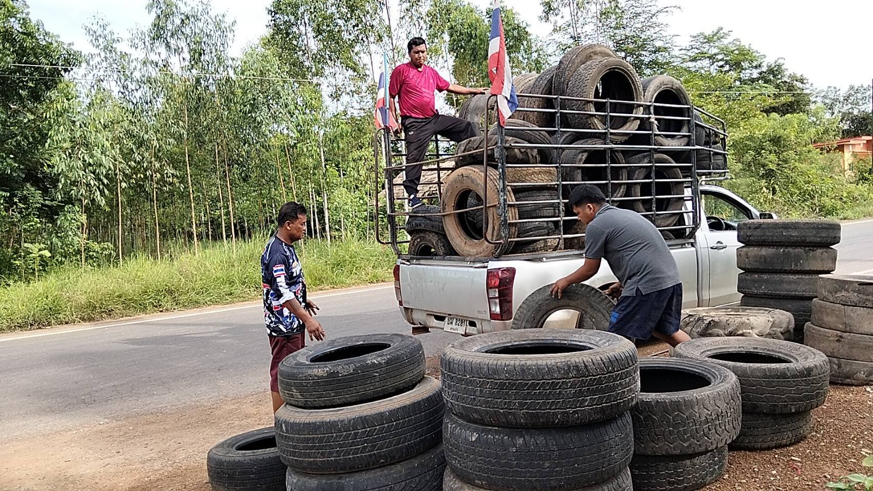 นายรุ่งนภา ยอดเพชร ในนามช้างน้อยขนุนซิ่งกล่าวว่า ตนเองกับเพื่อนกลุ่มเซียนแหร่วมกันนำยางรถยนต์ที่มีประชาชนบริจากมา จะนำไปมอบให้ทหารที่ค่ายสุรสิงห์จังหวัดสระแก้ว วันนี้รวบรวมยางรถยนต์เก่าได้3คันรถเพื่อจะได้นำไปทำเบอร์เกอร์ และมีตชด.125 ขอมาซึ่งจะได้รวบรวมยางรถยนต์เก่าให้ตชด.ในเร็ววันนี้ต่อไปครับ