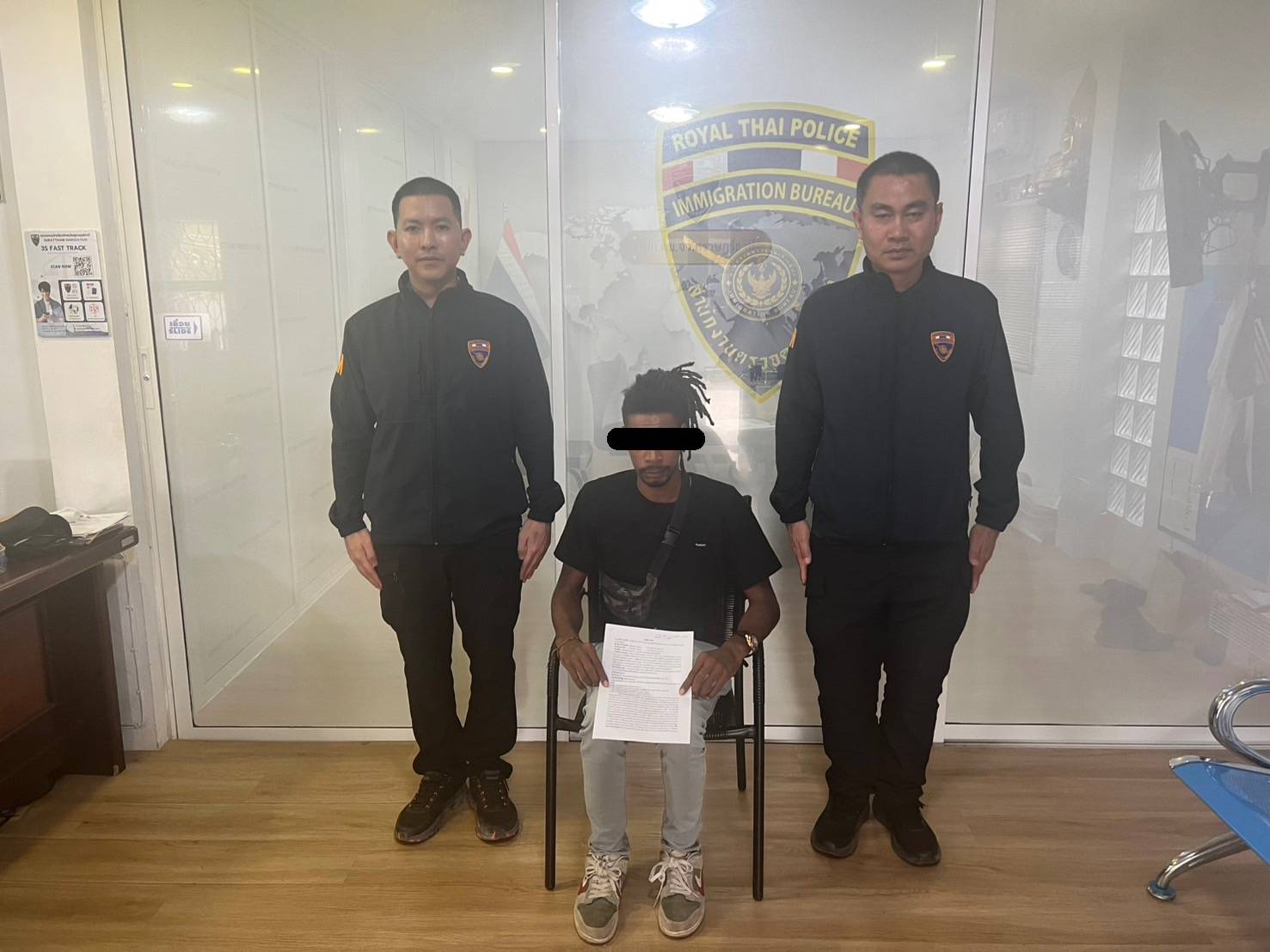 ขณะที่นายจอร์แดน ฯ ได้เปิดห้องพัก เจ้าหน้าที่ชุดจับกุมจึงได้เข้าทำการแสดงตัวเป็นเจ้าหน้าที่ตรวจคนเข้าเมือง เพื่อขอตรวจสอบหนังสือเดินทางหรือเอกสารการอยู่ในราชอาณาจักรของนายจอร์แดน ฯ ปรากฎว่าไม่มีหนังสือเดินทาง จึงได้นำตัวมาตรวจสอบกับระบบไบโอเมตริก พบว่าการอนุญาตให้อยู่ในราชอาณาจักรสิ้นสุดลงเมื่อวันที่ 5 ส.ค. 2567 จนถึงปัจจุบันอยู่เกินวีซ่า จำนวน 365 วัน) เจ้าหน้าที่จึงได้จับกุมตัวนำส่งร้อยเวร สภ.บ่อผุด เพื่อดำเนินคดีตามกฎหมาย หลังจากดำเนินคดีเสร็จแล้ว จะได้ลงบันทึกเป็นบุคคลต้องห้ามเข้ามาในราชอาณาจักร และจะได้ส่งตัวกลับไปดำเนินคดีลักลอบค้ายาเสพติดที่ประเทศฝรั่งเศส ต่อไป