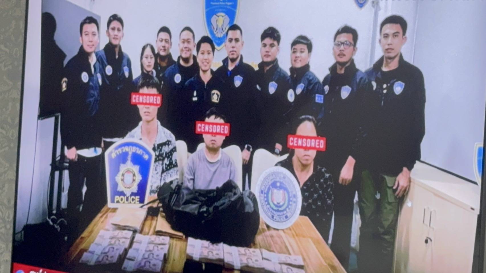 กระทั่งวันที่ 5 สิงหาคม ที่ผ่านมาเวลา 12.00 น. ได้พบกับได้จับกุมนายฉิน หลง หรือ MR.QIN LONG อายุ 29 ปี สัญชาติจีน นายจางลู่ผิง หรือ MR.ZHANG LUPING อายุ 30 ปี สัญชาติจีน น.ส.สุดารัตน์ อารี อายุ 40 ปี ซึ่งทั้ง 3 ราย ได้ไปทำธุรกรรมโดยการถอนเงินจากธนาคารดังกล่าว เจ้าหน้าที่จึงได้เข้าสอบถามเกี่ยวกับรายละเอียดการทำธุรกรรมดังกล่าวและเชิญบุคคลทั้งหมด มายัง ศปอส.ภ.5 เพื่อตรวจค้น พร้อมสอบสวนและลงบันทึกไว้เป็นหลักฐาน เบื้องต้น พบเงินสดซุกซ่อนอยู่ในกระเป๋าเป้ นายฉิน หลง หรือ MR.QIN LONG จำนวน 530,000 บาท โทรศัพท์มือถือจำนวน 1 เครื่อง พบเงินสดซุกซ่อนอยู่ใน กระเป๋าเป้นายจางลู่ผิง หรือ MR.ZHANG LUPING จำนวน 610,000 บาท โทรศัพท์มือถือจำนวน 3 เครื่อง รวมเป็นเงิน 1,140,000 บาท และพบบัญชีธนาคารจำนวน 3 เล่ม บัตรกดเงินสดจำนวน 2 ใบ โทรศัพท์มือถือจำนวน 1 เครื่อง จากกระเป๋า น.ส.สุดารัตน์ ด้วย