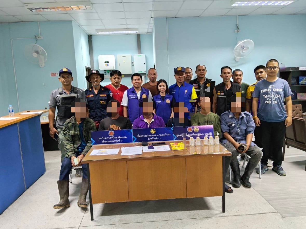 เมื่อคืนวันที่ 8 สิงหาคม 2568 ตั้งแต่เวลา 22.00 น. อำเภอตะกั่วทุ่ง จังหวัดพังงา ภายใต้การอำนวยการของนายวิเชฐ สูยะนันท์ นายอำเภอตะกั่วทุ่ง นางสาวนุสรา ธรรมประดิษฐ์ ปลัดอำเภอหัวหน้ากลุ่มงานบริหารงานปกครอง และนายสุระไชย ทองศรีรักษ์ ปลัดอำเภอหัวหน้าฝ่ายความมั่นคง ได้มอบหมายให้ นายธีระวัตร แก้วพิทักษ์ ปลัดป้องกันอำเภอตะกั่วทุ่ง นางสาวเสาวพร เมตตามตะกุล ปลัดอำเภอประจำตำบลกระโสม นำสมาชิกกองร้อยอส.อ.ตะกั่วทุ่งที่ 3 ร่วมกับ นายสุวัฒน์ เหมซะ ผู้ใหญ่บ้าน ม.5 ต.กระโสม นายเกรียงไกร ทอง ผู้ใหญ่บ้าน ม.7 ต.กระโสม สารวัตรกำนัน ต.ถ้ำ และชุดรักษาความปลอดภัยหมู่บ้าน(ชรบ.) ม.5 ต.กระโสมระดมกำลังฝ่ายปกครอง ผู้นำท้องที่ และชุดรักษาความปลอดภัยหมู่บ้าน ลงพื้นที่ตั้งจุดตรวจ-จุดสกัดในตำบลกระโสมและตำบลถ้ำ ตามปฏิบัติการ “No Drugs No Dealers” ภายใต้นโยบาย “สัปดาห์สีแดง” ของกระทรวงมหาดไทย
