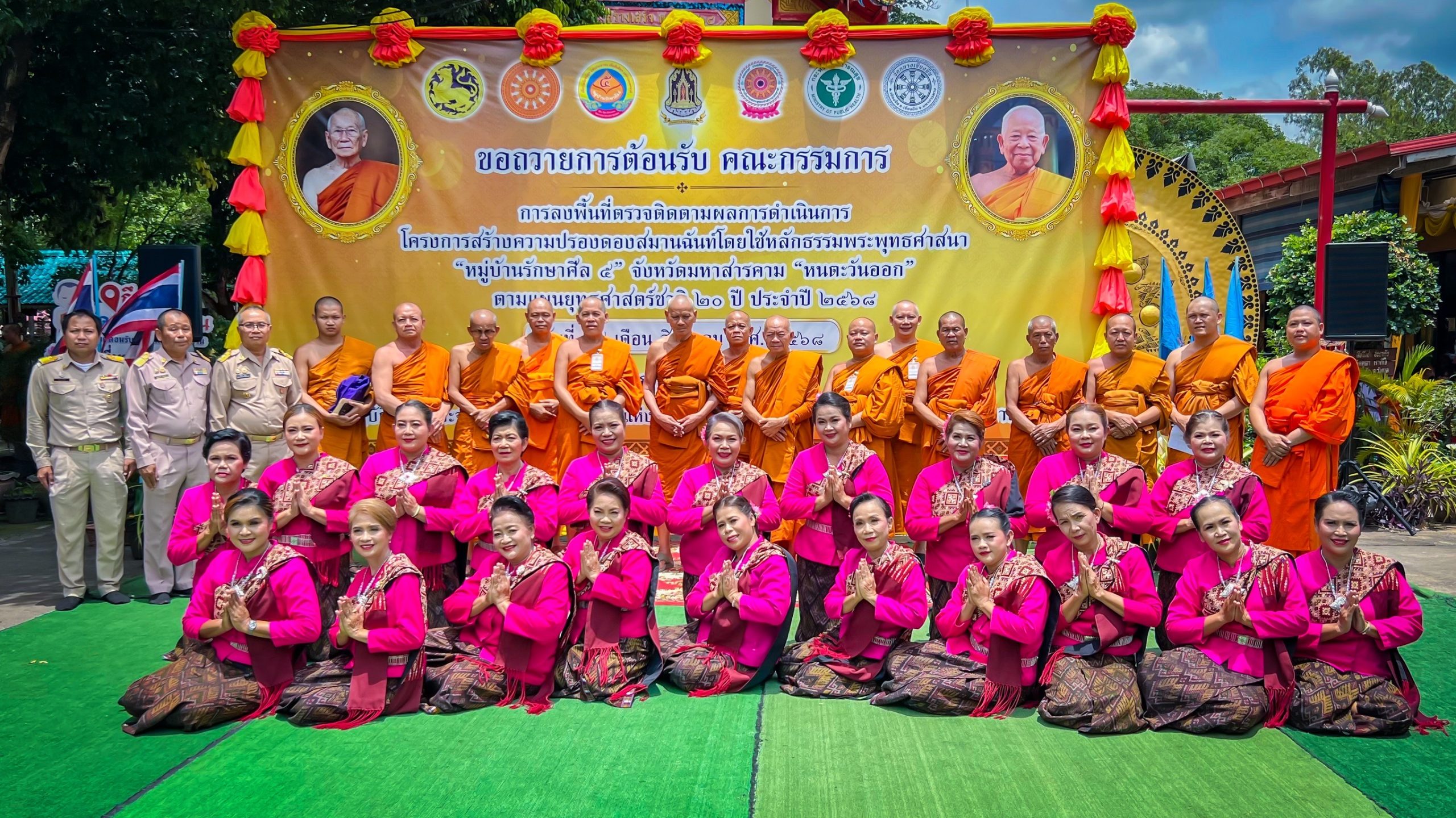 นายกนก ศรีวิชัยชัย รองผู้ว่าราชการจังหวัดมหาสารคาม กล่าวว่า จังหวัดมหาสารคาม และคณะสงฆ์จังหวัด ได้ร่วมกับ หน่วยงานราชการ สถานศึกษา องค์กรปกครองส่วนท้องถิ่น องค์กรภาคเอกชน กำนัน ผู้ใหญ่บ้าน องค์กรเครือข่ายชาวพุทธ ได้ดำเนินการขับเคลื่อนโครงการเพื่อสนับสนุนนโยบายในการเสริมสร้างความสมานฉันท์ของคนในชาติ ให้เกิดความสงบ สันติสุข มีความสามัคคี กลมเกลียวกัน สอดคล้องกับเจตนารมณ์ของการสร้างความปรองดองสมานฉันท์ โดยการให้พุทธศาสนิกชนได้น้อมนำหลักศีล 5 มาประพฤติปฏิบัติในการดำเนินชีวิตประจำวัน เพื่อกระตุ้นและเสริมสร้างบทบาทการทำงานของกำนัน ผู้ใหญ่บ้าน และคณะกรรมการหมู่บ้าน (กม.) คณะกรรมการกลางหมู่บ้าน อาสาพัฒนาและป้องกันตนเอง (อปพ.) เพื่อเป็นการต่อยอดการพัฒนาในการสร้างความเข็มแข็งให้กับหมู่บ้านอย่างยั่งยืน รวมทั้งการสร้างขวัญกำลังใจในการปฏิบัติงาน ตลอดจนการสร้างความตระหนักและประชาสัมพันธ์ผลงานให้สาธารณชนรับทราบอย่างแพร่หลาย