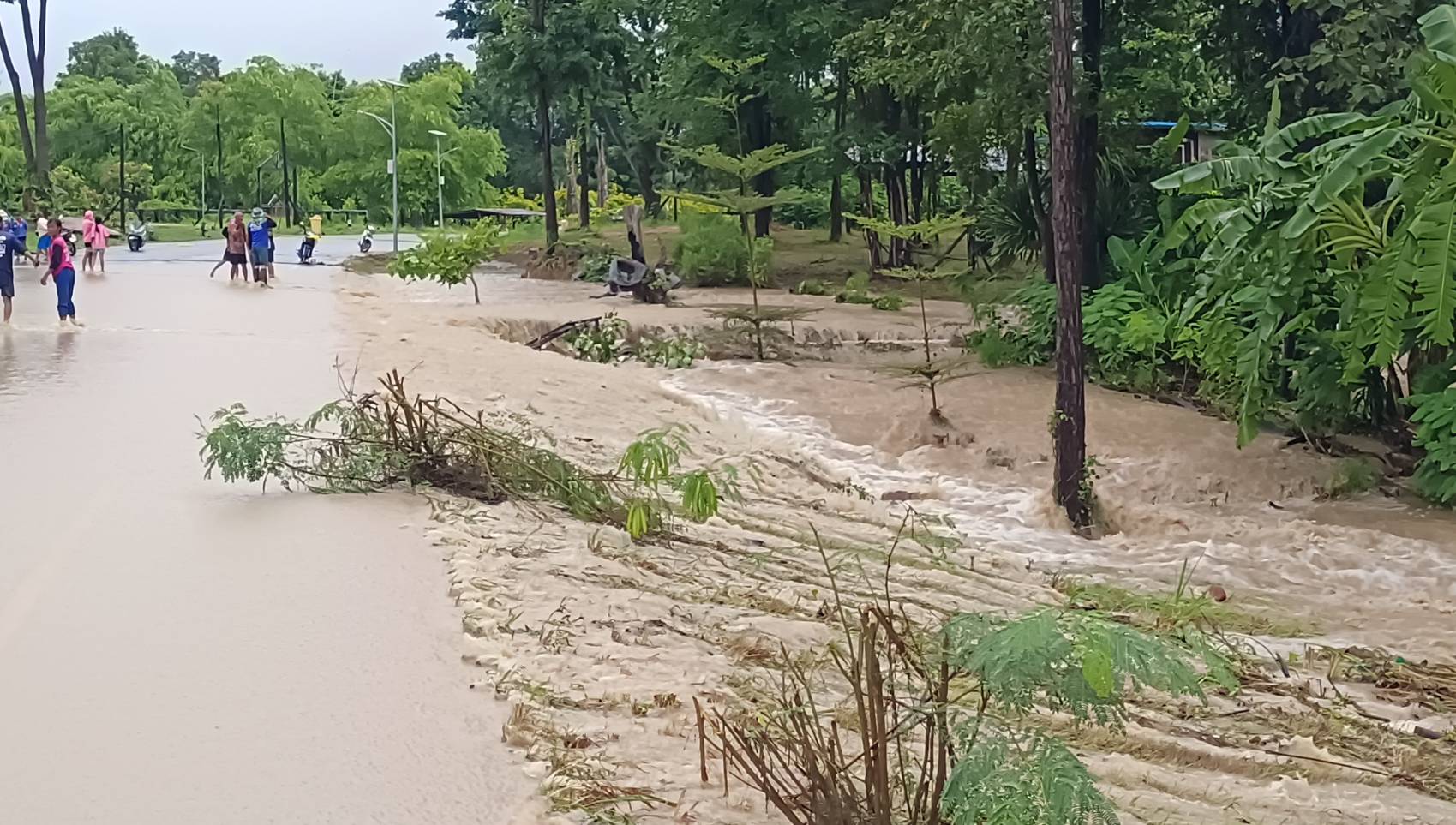 เมื่อวันที่ 16 ส.ค.68 ผู้สื่อข่าวรายงานว่าตลอดทั้งคืนในพื้นที่จชัยภูมิ ได้มีฝนตกหนักและรุนแรงอย่างทั่วถึง ขณะเดียวกันได้เกิดเหตุน้ำป่าจากเทือกเขาบุมะเขือ เทือเขาธงหัก โซนภูเขาติดบ้านห้วยทับนายและบ้านดอนกอก ต.โคกสะอาด ซึ่งเป็นต้นน้ำที่จะไหลลงสู่ลำห้วยเชียงทา ได้ไหลบ่าลงมายังอ่างเก็บน้ำฝายหลวง และได้ไหลบ่าทะลักท่วมถนนสายบ.โคกสะอาด-บ.กระจวน หมู่ 4 ตำบลโคกสะอาด อ.หนองบัวระเหว จ.ชัยภูมิ เป็นระยะทางยาวกว่า 20 เมตรนอกจากนั้นน้ำป่ายังไหลบ่าเข้าท่วมพื้นที่การเกษตรนาข้าวของชาวบ้าน ของ2หมู่บ้าน ได้แก่ ภูเขาทองหมู่9 และบ.โคกสะอาดหมู่3 ได้เสียหายนาข้าว ไร่มันสำประหลัง ไร่อ้อย จมบาดาลไปแล้วกว่า 500 ไร่ และถนนการเกษตรหลายถูกน้ำท่วมและกัดเซาะได้รับความเสียหายในครั้งอีกด้วย ขณะเดียวกันมวลน้ำดังกล่าวยังได้ซัดเอาเศษไม้ที่ชาวบ้านเตรียมไว้สร้างบ้านเรือนไทยหายไปกับสายน้ำเสียหายจำนวนมาก เพราะชาวบ้านตั้งตัวไม่ทันไม่คิดว่าจะเกิดน้ำป่าไหลมาท่วมเช่นนี้ นับเพราะที่ผ่านมา บริเวณดังกล่าวไม่เคยเกิดน้ำท่วมหนักเช่นนี้มาก่อนเลย โดยน้ำป่าได้ทะลักเข้าท่วมในช่วงตีห้าจนถึงช่วงสายวันนี้ก็ยังมีมวลน้ำไหลอยู่อย่างต่อเนื่อง และน้ำป่าดังกล่าวยังจ่อท่วมถนนสายโคกสะอาด-ภูเขาทองเพิ่มอีกสายและวขณะนี้ ขณะที่ฝูงไส้เดือนก็หนีตายมสดิ้นอยู่บถนนเป็นจำนวนมากอีกด้วย