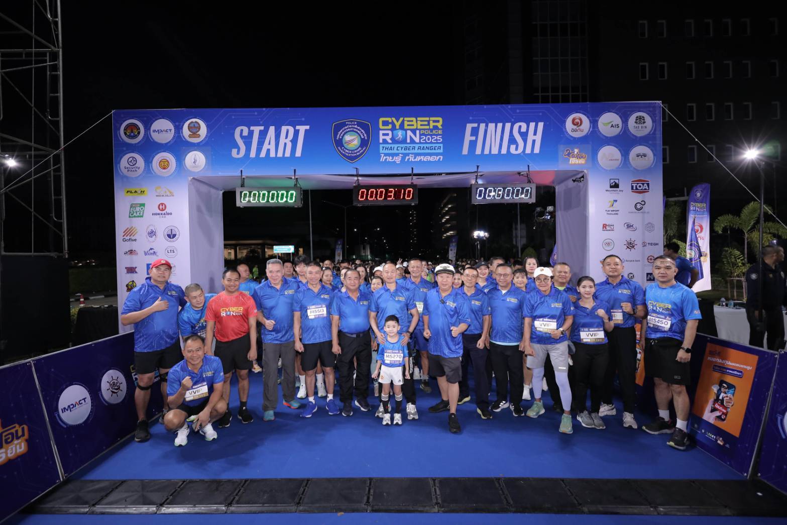 เมื่อเวลา 05.00 น. วันที่ 24 ส.ค . ที่อาคารเฉลิมพระเกียรติฯ เมืองทองธานี กองบัญชาการสืบสวนสอบสวนอาชญากรรมทางเทคโนโลยี ได้จัดกิจกรรม“CYBER POLICE RUN 2025” เสริมสร้างสุขภาพกายใจ ยกระดับความตระหนักรู้ภัยออนไลน์ ภายใต้โครงการ THAI CYBER RANGER “ไทยรู้ ทันหลอก” โดยมี พล.ต.ท.ไตรรงค์ ผิวพรรณ ผบช.สอท. เป็นประธาน ในการปล่อยตัวนักวิ่งร่วมเข้าแข่งขัน แบ่งระยะการวิ่งทั้งหมดเป็น 3 ระยะ ประกอบด้วย วิ่ง 10 กม., วิ่ง 5 กม. และวิ่ง 2 กม. ทั้งนี้มีประชาชนจำนวนมากเข้าร่วมการแข่งขันมากกว่า 2 พันคน นอกจากนี้ยังมี นายดำรงค์ เก่งรุ่งเรืองชัย ประธานคณะจัดงาน CYBER POLICE RUN 2025 พล.ต.ต.วิวัฒน์ คำชำนาญ พล.ต.ต.ทินกร รังมาตย์ พล.ต.ต.อรุษ แสงจันทร์ รอง ผบช.สอท. นายตัน ภาสกรนที ประธานกรรมการบริหารบริษัท อิชิตัน จำกัด (มหาชน), นายพันธนันท์ อมตานนท์ ประธานเจ้าหน้าที่ฝ่ายพัฒนาธุรกิจ Chief Business Development Officer บริษัท ฟอร์ท คอร์ปอเรชั่น จำกัด (มหาชน), นายอนุภัทร พิสิฐโภคิน ประธานเจ้าหน้าที่บริหารสายงานการตลาด Chief Business Marketing Officer, นายจักรี จันทร์มาลา ผู้จัดการฝ่ายรัฐกิจสัมพันธ์ บริษัท แฟลช เอ็กซ์เพรส (ประเทศไทย) จำกัด, น.ส. กุลวดี จิตวร ผู้อำนวยการบริหาร อิมแพ็ค เมืองทองธานี แมเนจเม้นท์ ผู้บริหารอสังหาริมทรัพย์ ทรัสต์ และมูลนิธิพระราหู ได้มาร่วมให้กำลังใจ ปล่อยตัวนักวิ่ง และออกวิ่งไปกับเหล่านักวิ่งนับพันชีวิต