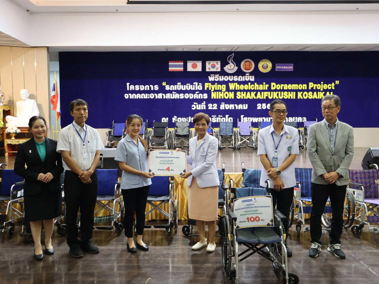 องค์กร NIHON SHAKAIFUKUSHI KOSAIKAI จากประเทศญี่ปุ่น มอบรถเข็นวีลแชร์ โครงการ “รถเข็นบินได้” จำนวน 100 คัน ช่วยเหลือผู้พิการในพื้นที่จังหวัดสกลนคร