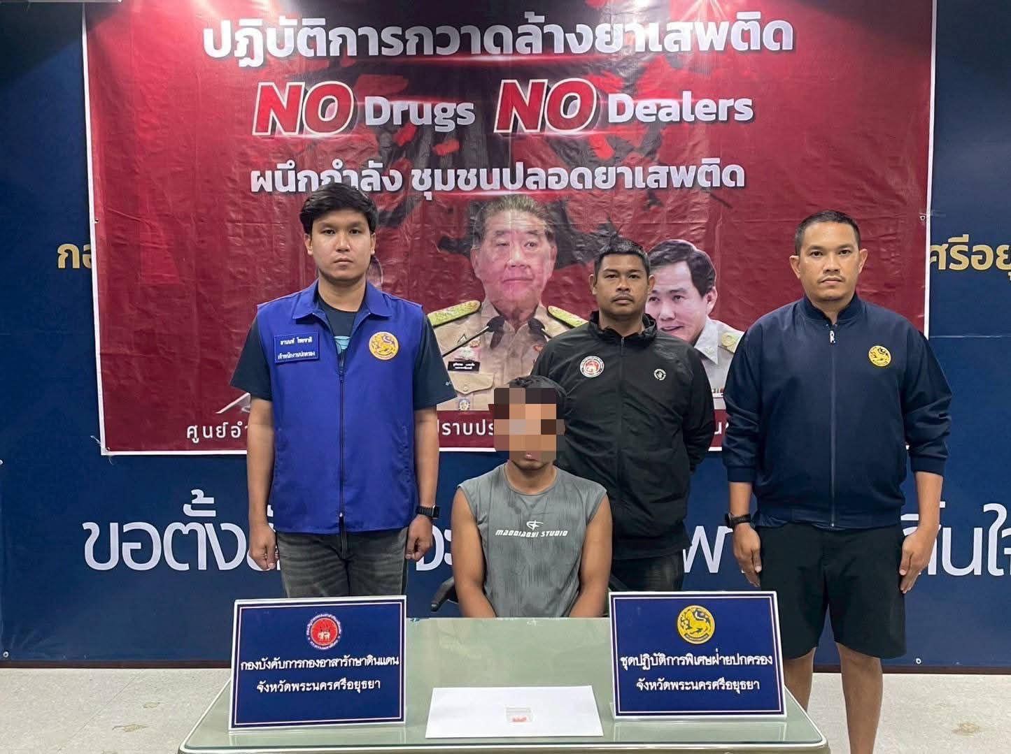 วันที่ 27 สิงหาคม 2568 นายภูวริน บุญภูพันธ์ตันติ ป้องกันจังหวัดพระนครศรีอยุธยา นายอานนท์ ไชยชาติ ผู้ช่วยป้องกันจังหวัดจังหวัดพระนครศรีอยุธยา นำกำลังชุดปฏิบัติการพิเศษฝ่ายปกครองจังหวัดพระนครศรีอยุธยา ชุดเฉพาะกิจกองบังคับการกองอาสารักษาดินแดนจังหวัดพระนครศรีอยุธยา ร่วมกับชุดปฏิบัติการพิเศษฝ่ายปกครอง อำเภอพระนครศรีอยุธยา ลงพื้นที่ดำเนินการเรื่องยาเสพติดจากข้อมูลการร้องทุกข์จากประชาชนที่ได้รับความเดือดร้อนในหมู่บ้านชุมชนผ่านการ Re X-Ray ค้นหาผู้ค้าผู้เสพ ในพื้นที่ชุมชนแม่น้ำใหญ่ ม.12 ตำบลคลองตะเคียน อำเภอพระนครศรีอยุธยา หลังได้รับแจ้งจากประชาชนในชุมชนที่ได้รับความเดือดร้อนจากการมั่วสุมเสพยาบ้าว่า มีชายเจ้าของบ้านพักในซอยตรงข้ามร้านค้าเป็นแหล่งมั่วสุมยาเสพติดและลักลอบขายยาบ้าเจ้าหน้าที่ฝ่ายปกครองจึงได้สืบสวนหาข่าวในทางลับและวางแผนเข้าปิดล้อมตรวจค้น จนสามารถ ควบคุมตัวนายวิรัช หรือ ทองนวน พร้อมของกลาง ยาบ้า จำนวน 4 เม็ด ซุกซ่อนอยู่ในรถจักรยานยนต์ และยังได้ควบคุมผู้เสพยาเสพติด จำนวน 3 ราย เจ้าหน้าที่ฝ่ายปกครองจึงได้แจ้งข้อกล่าวหา มียาเสพติดให้โทษประเภท 1 (ยาบ้า) ไว้ในครอบครองโดยไม่ได้รับอนุญาต และเสพยาเสพติดให้โทษประเภท 1 (เมทแอมเฟตามีน) โดยผิดกฎหมาย