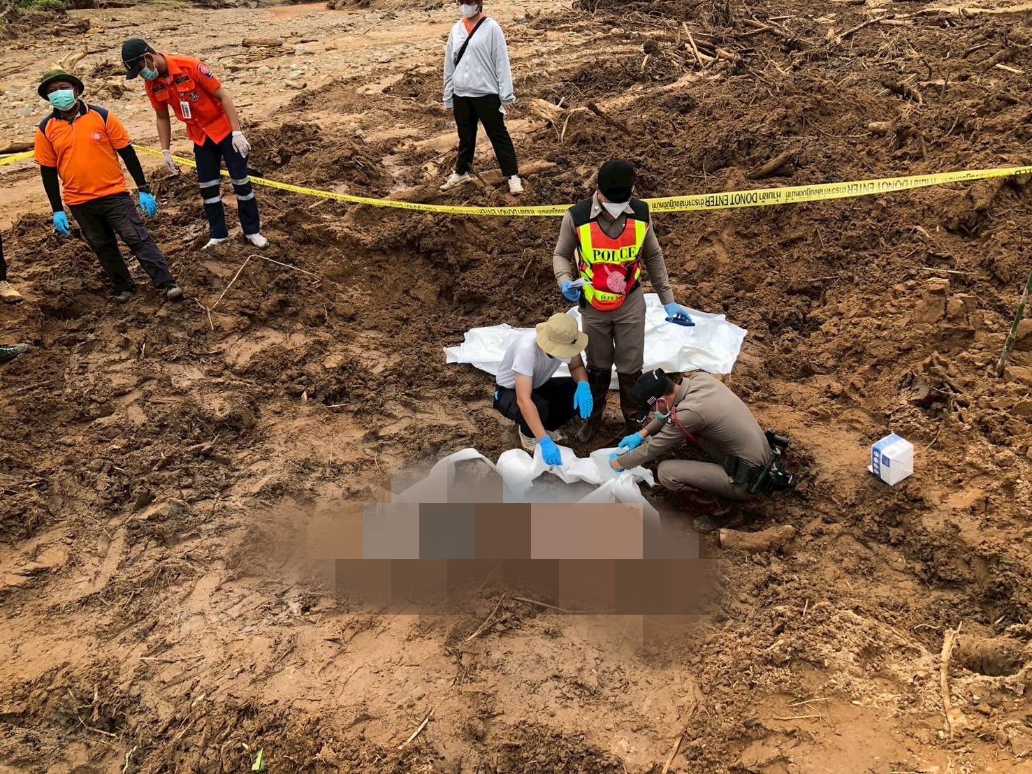 ในที่สุดความพยายามในการค้นหาผู้สูญหายไปกับน้ำป่า 2 รายที่ห้วยโป่ง เช้านี้เจอแล้ว 1 ศพ เป็นสามี ที่ต้องใช้รถแบคโฮช่วยขุดค้นเจอในสภาพโดนทับถมด้วยดินและหิน ทีมค้นหาบอกต้องใช้วิธีสังเกตจากกลุ่มที่ต้องสงสัยที่มีแมลงวันตอม