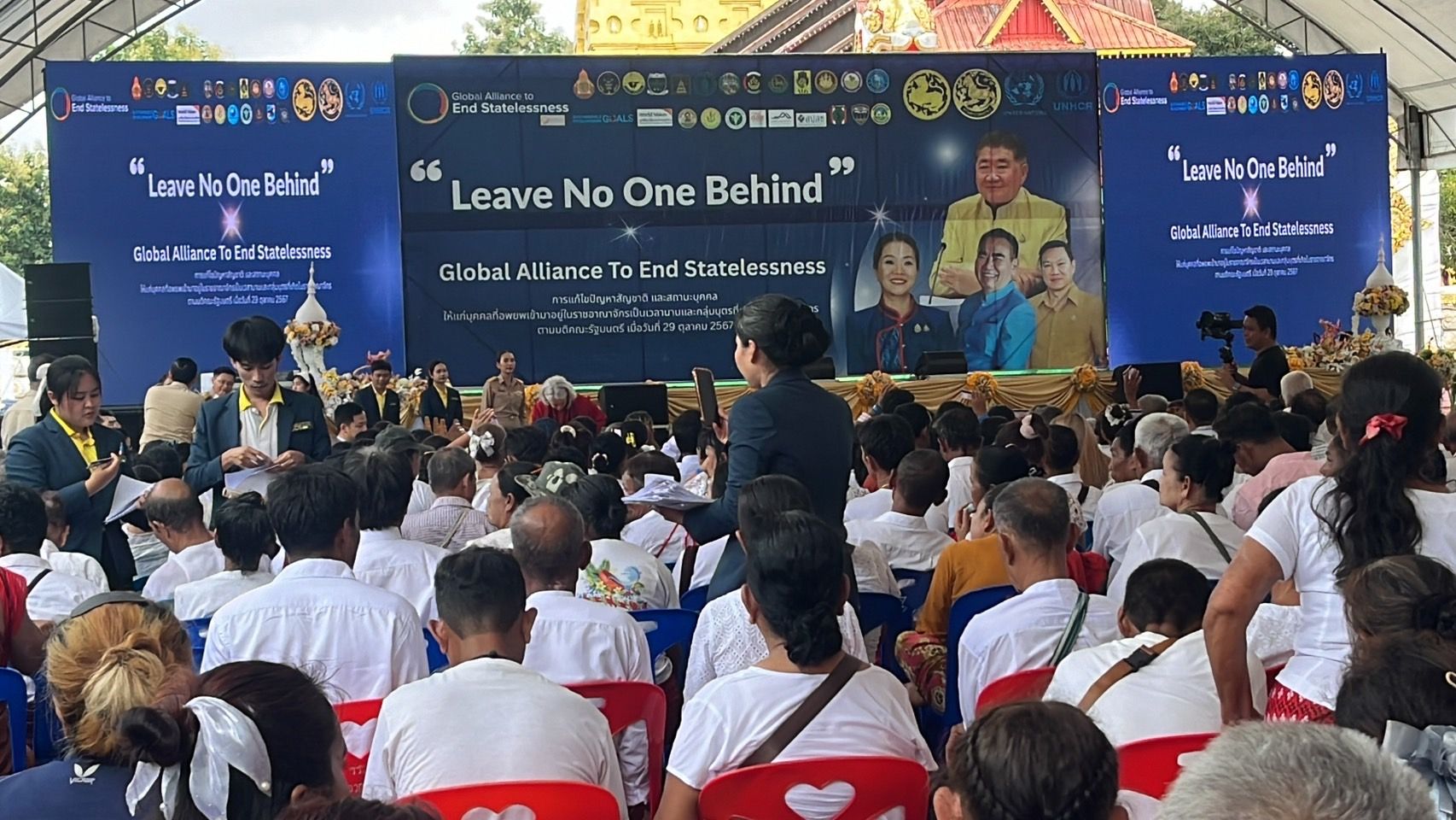 ซึ่งบรรยากาศเป็นไปด้วยความอบอุ่น ทุกคนที่มารับบัตรต่างมีอาการตื่นเต้นดีใจมีใบหน้าที่ยิ้มแย้มแจ่มใส เป็นอย่างมาก ขณะที่นางสาวธีรรัตน์ สำเร็จวาณิชย์ รักษาการรัฐมนตรีช่วยว่าการกระทรวงมหาดไทย ได้เดินทักทายพี่น้องประชาชนทุกคนอย่างเป็นกันเอง อีกทั้งร่วมรับชมการแสดง “มนต์เสน่ห์ดินแดน แห่งความร่มเย็น” และรับชมวีดีทัศนการดำเนินงานการแก้ไขปัญหาสัญชาติและสถานะบุคคลฯ จากนั้นนางแทมมี่ ลินน์ ชาร์ป ผู้แทนสำนักงานข้าหลวงใหญ่ผู้ลี้ภัยแห่งสหประชาชาติ (United Nations High Commissioner for Refugee: UNHCR) ประจำประเทศไทย ได้กล่าวเกี่ยวกับงานสัญชาติและสถานะบุคคล ในหัวข้อ “Statelessness”