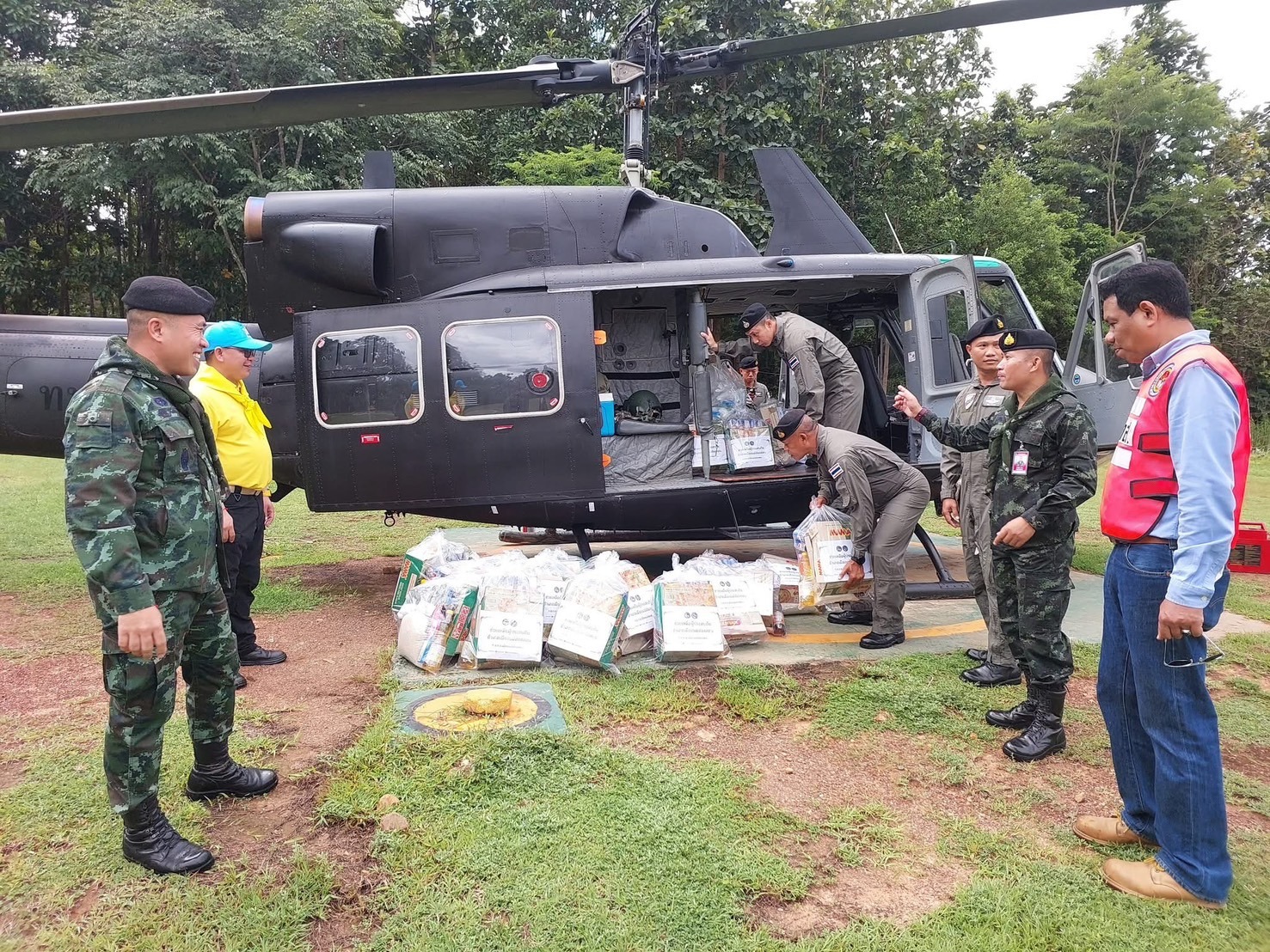 ขณะเดียวกันทหารหน่อยเฉพาะกิจสิงหนาทแม่ฮ่องสอน ร่วมกับโครงการสะพานบุญครูหนึ่งและหน่วยงานต่างๆ ต้องใช้วิธีการขนส่งน้ำดื่มและสิ่งของต่างๆ โดยทางเฮลิคอปเตอร์ไปบรรเทาความเดือดร้อนกันก่อน ส่วนสิ่งของจำนวนมากนั้นต้องขนส่งไปกับรถยนต์ที่หาทางเข้าไปถึงยังหมู่บ้านเป้าหมาย ส่วนหนึ่งต้องให้เครื่ิองจักรเข้าทำการเคลียร์พื้นที่และเปิดเส้นทางให้ได้ในวันนี้ตามเป้าหมาย