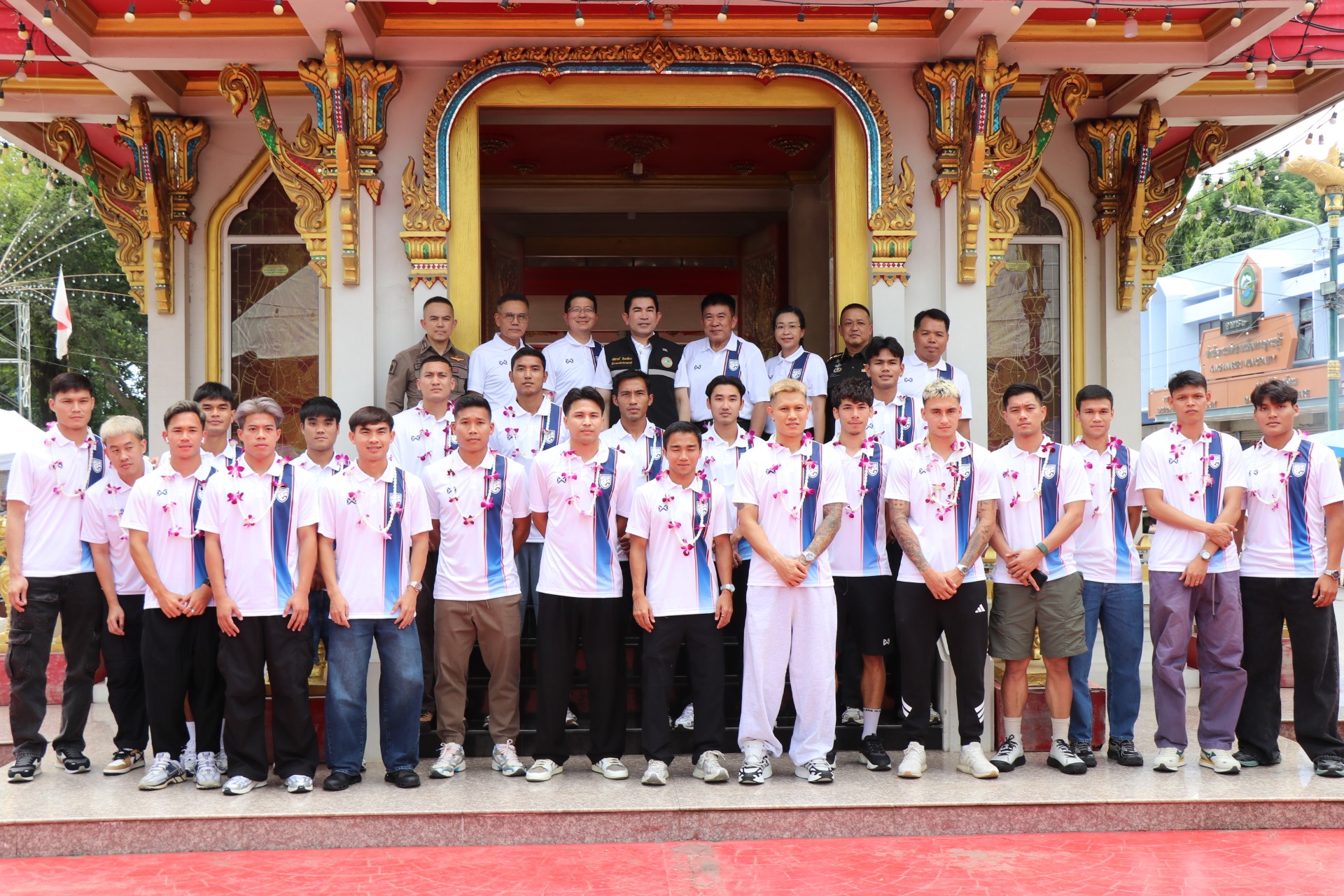 วันนี้ 1 กันยายน 2568 ผู้สื่อข่าวรายงานว่า ที่ ศาลหลักเมืองกาญจนบุรี นายอธิสรรค์ อินทร์ตรา ผู้ว่าราชการจังหวัดกาญจนบุรี พร้อมด้วยคณะรองผู้ว่าราชการจังหวัดกาญจนบุรี หัวหน้าส่วนราชการ เจ้าหน้าที่ และประชาชน ร่วมต้อนรับคณะผู้ฝึกสอนและนักกีฬาฟุตบอลทีมชาติไทย โดยคณะผู้ฝึกสอนและนักกีฬาฟุตบอลทีมชาติไทย สักการะศาลหลักเมือง เพื่อความเป็นศิริมงคล ก่อนเดินทางเข้าที่พัก ก่อนลงซ้อมช่วงเย็น