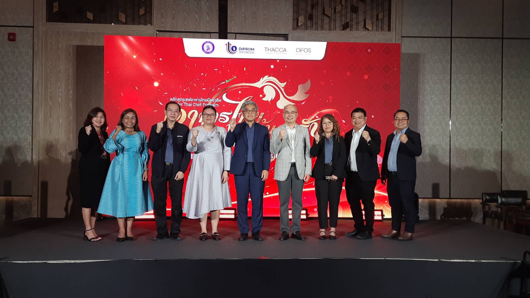 สำหรับ หลักสูตร “อาหารไทยต้นตำรับเพื่อการประกอบอาชีพ” ได้รับการออกแบบให้ครอบคลุมทั้งภาคทฤษฎีและการฝึกปฏิบัติจริง รวมกว่า 242 ชั่วโมง แบ่งเป็นการเรียนออนไลน์ 92 ชั่วโมง ผ่านระบบ OFOS และ DIPROM E-Learning และการฝึกอบรมภาคสนาม 150 ชั่วโมง ณ สถานที่จัดการอบรม โดยเนื้อหาครอบคลุมตั้งแต่การเรียนรู้ทฤษฎีพื้นฐานอาหารไทย การคัดเลือกวัตถุดิบอาหารไทยต้นตำรับ การปรุงอาหารไทยต้นตำรับ 50 เมนูมาตรฐาน และเมนูที่สะท้อนอัตลักษณ์ไทยเพิ่มอีก 10 เมนู รวมถึงการถ่ายทอดศิลปะการจัดจาน เทคนิคการบริหารจัดการครัว การควบคุมคุณภาพอาหาร และความรู้ด้านมาตรฐานสุขอนามัยและความปลอดภัยอาหารตามหลักสากล