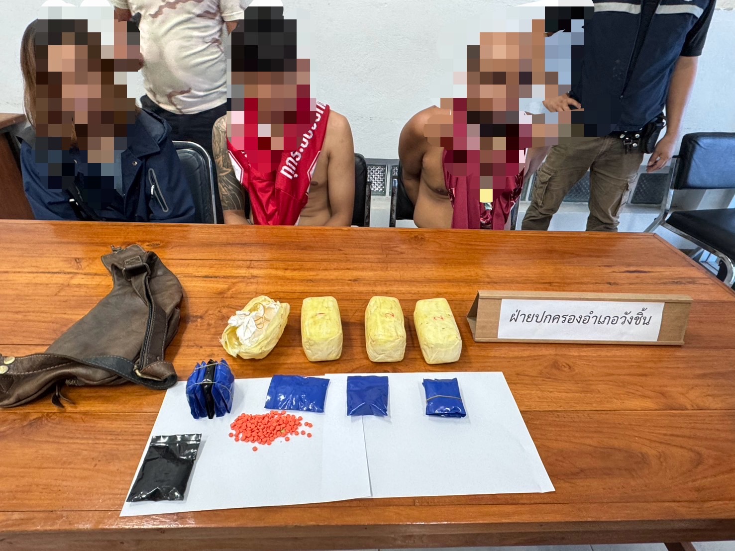 จากการตรวจสอบ สามารถจับกุม นายเอ (นามสมมุติ) อายุ 30 ปี อยู่บ้านหมู่ที่ 10 ต.แม่พุง อ.วังชิ้น จ.แพร่ นายบี (นามสมมุติ) อายุ 42 ปี อยู่บ้านหมู่ที่ 10 ต.แม่พุง อ.วังชิ้น จ.แพร่ และ น.ส.ซี (นามสมมุติ) อายุ 28 ปี อยู่บ้านบ้านหมู่ที่ 6 ต.แม่พุง อ.วังชิ้น จ.แพร่ พร้อมของกลาง ยาบ้า 4 มัด และบรรจุในถุงซีบบางส่วน รวมประมาณ 8,000 เม็ด กระเป๋าสะพายสีน้ำตาล 1 ใบ จึงควบคุมตัวทั้งหมดมาสอบสวน
