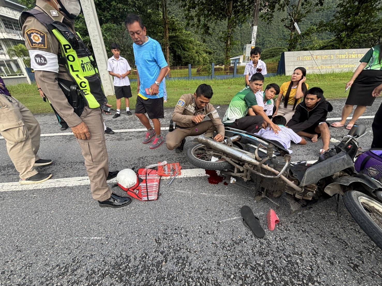 เมื่อเวลา 16.23 น.วันที่ 4 ก.ย.68 ผู้สื่อข่าวรายงานว่า สื่อโซเชียลในพื้นที่พังงา เฟซบุ๊กใช้ชื่อ บีคุงก์สมศักดิ์ แก้วจินดา (เก้าหกสาม) ได้โพสต์ลงมีข้อความว่าขอขอบคุณทีม จราจร สภ.เมืองพังงา Oat PS ช่วยถอดล้อทีมงานช่างเสี่ยโจ Joe Sathaporn วังหวังหม้อแกง ทีม พขร.รพ.พังงา ทีม 1129 การไฟฟ้าพังงา ทีมน้องอาสากู้ชีพกู้ภัยโรงเรียนดีบุกพังงาวิทยายน และพลเมืองดีทุกท่าน ออกรับผู้บาดเจ็บ 2 ราย ชาย 1 รายเล็กน้อย อีกรายชาย 13 ปี ขาซ้ายติดในล้อรถ แผลฉีกขาดขนาดใหญ่ลึกถึงกระดูกเลือดออกเยอะ นิ้วเท้าติดในวงโซ่รถ จักรยายเร่งการให้ช่วยเหลือ นำส่ง โรงบาลพังงา เหตุ จักรยายล้มเอง บริเวณหน้าสำนักงานการไฟฟ้าพังงา ต.ถ้ำน้ำผุด อ.เมืองพังงา