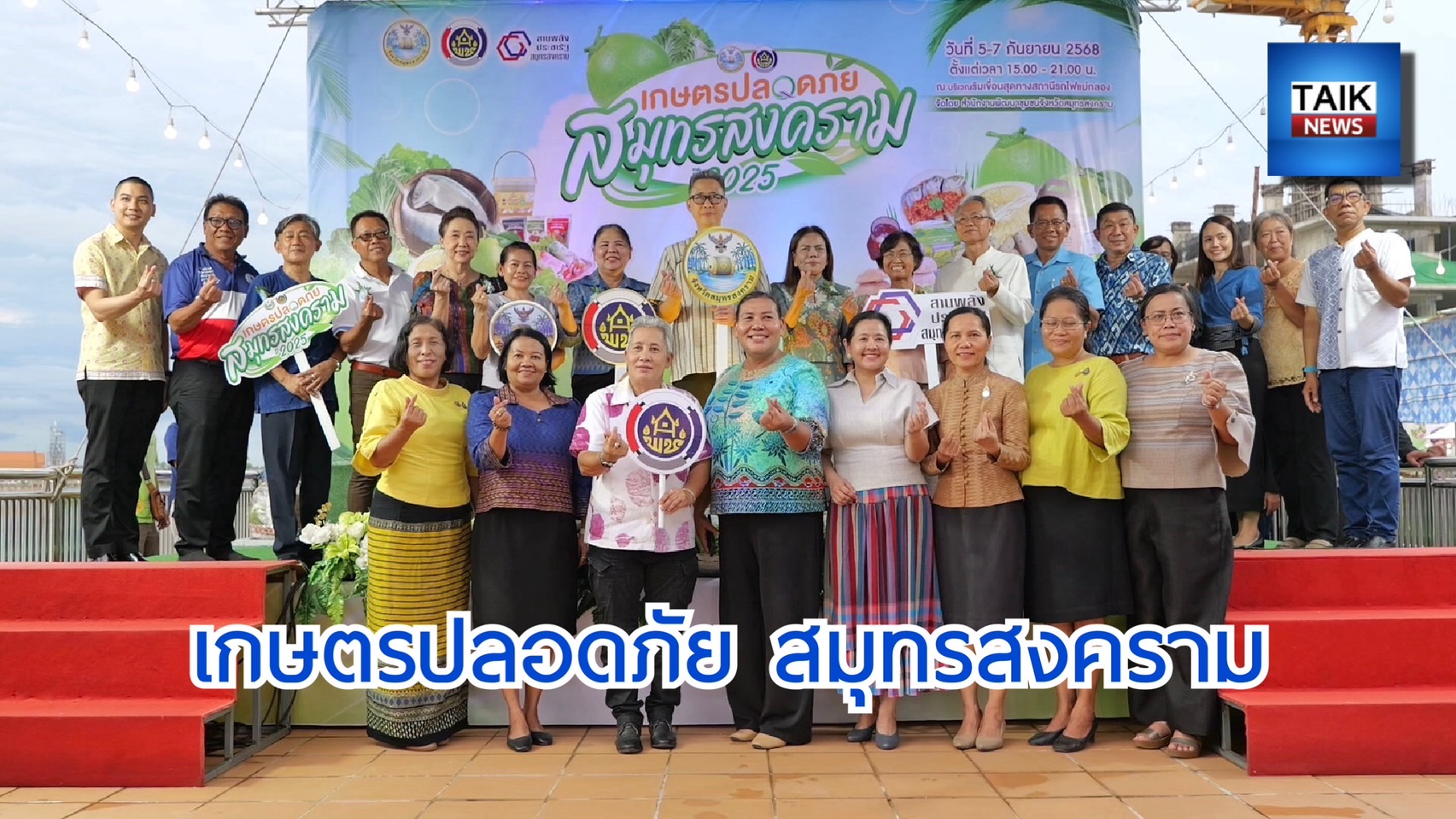 เวลา 16.00 น. วันนี้ 5 กันยายน 2568 ที่บริเวณริมเขื่อนสุดทางสถานีรถไฟแม่กลอง จ.สมุทรสงคราม นายรนัสถ์ชัย พุ่มเจริญ รอง ผวจ.สมุทรสงครามเป็นประธานเปิดงาน “เกษตรปลอดภัยสมุทรสงคราม 2025” วันที่ 5–7 กันยายน 2568 ตามโครงการเสริมสร้างรายได้ด้วยเครือข่ายเกษตรปลอดภัย กิจกรรมย่อยที่ 3 ส่งเสริมช่องทางการตลาดเครือข่ายเกษตรปลอดภัย ซึ่งสำนักงานพัฒนาชุมชน จ.สมุทรสงคราม โดยนางวาสนา ไขว้พันธุ์ พัฒนาการจังหวัดจัดขึ้น