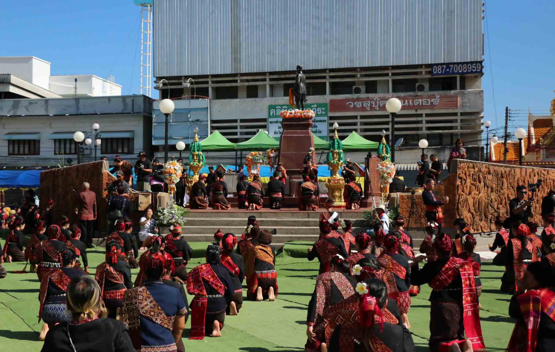 โดยพิธีเริ่มตั้งแต่ช่วงเช้าเวลา 07.00 น.มีพิธีทำบุญตักบาตร และถวายภัตตราหารแด่พระสงฆ์ สักการะหอเจ้าบ้าน สักการะอนุสาวรีย์พระยาชัยสุนทร ถวายพวงมาลัยดอกไม้ พราหมณ์กล่าวชุมนุมเทวดา กล่าวถวายเครื่องสังเวย กล่าวคำขอขมา กล่าวคำบวงสรวง ปักธูปหางเครื่อง โปรยข้าวตอกดอกไม้ จากนั้นนางรำกว่า 500 คน ซึ่งพร้อมใจกันสวมชุดผู้ไท ห่มสไบแพรวา แสดงถึงอัตลักษณ์ของ จ.กาฬสินธุ์ร่วมรำบวงสรวงดวงวิญญาณพระยาชัยสุนทร เจ้าเมืองกาฬสินธุ์คนแรก เพื่อความเป็นสิริมงคล
